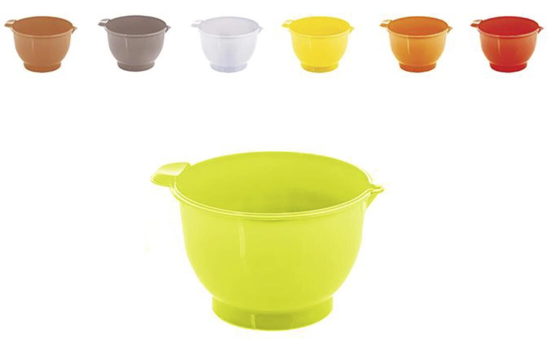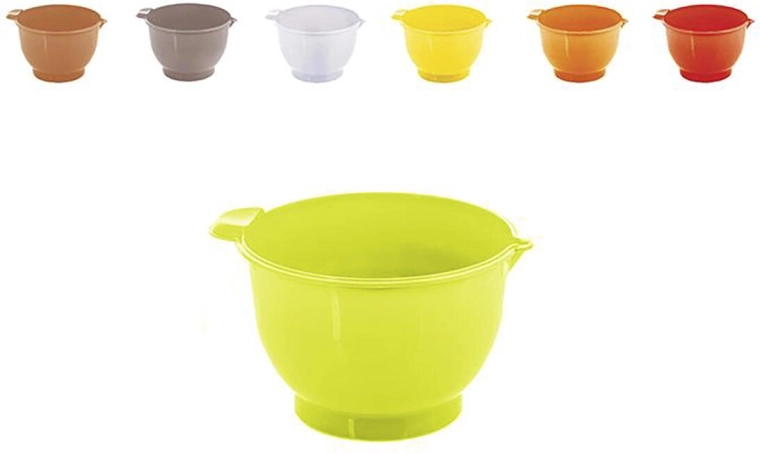 Bol à fouetter pratique de 2 l en plastique résistant avec fond en caoutchouc antidérapant pour une excellente stabilité pendant le travail. Grâce au bec verseur intégré, le transvasement des pâtes et des crèmes est simple et propre. Idéal pour la pâtisserie quotidienne et la préparation de crèmes ou de blancs en neige. Conception stable, légère et facile à nettoyer en assortiment de couleurs.