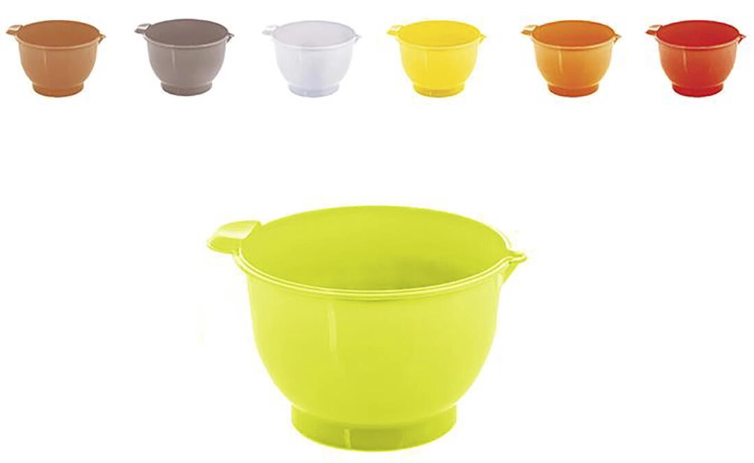 Le bec verseur intégré facilite un transvasement précis et propre des pâtes ou des crèmes dans le moule. Le plastique résistant est facile à entretenir, et le bol est léger et maniable. Livré en assortiment de couleurs, il s’intègre facilement dans toute cuisine.