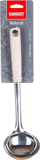 La louche NATURAL est conçue pour un usage quotidien fiable, en restauration comme à la maison. Sa tête profonde en inox permet de servir facilement soupes et sauces, tandis que la poignée légère et agréable en polypropylène avec ajout de son de blé assure une prise en main sûre.