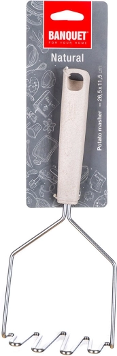 Découvrez le presse-purée Natural, conçu pour un confort quotidien en cuisine domestique comme professionnelle. La tête filaire en acier inoxydable assure un écrasement fluide et une texture homogène du purée, tandis que le manche ergonomique en polypropylène et son de blé tient bien en main.
