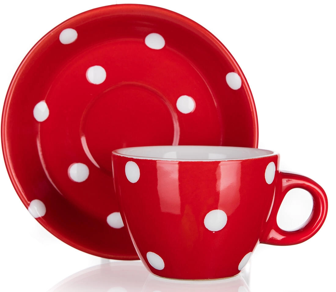 Tasse en céramique avec soucoupe 100 ml à pois – rouge