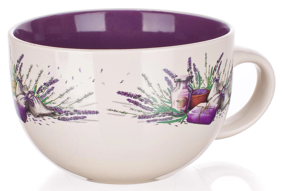 Profitez de votre boisson préférée avec style. Le mug jumbo en céramique Lavender, orné d’un délicat décor de lavande, est un excellent choix pour les amateurs de thé, de café et de cacao. Grâce à sa grande capacité de 660 ml, il est idéal pour les longs matins comme pour les soirées détente.