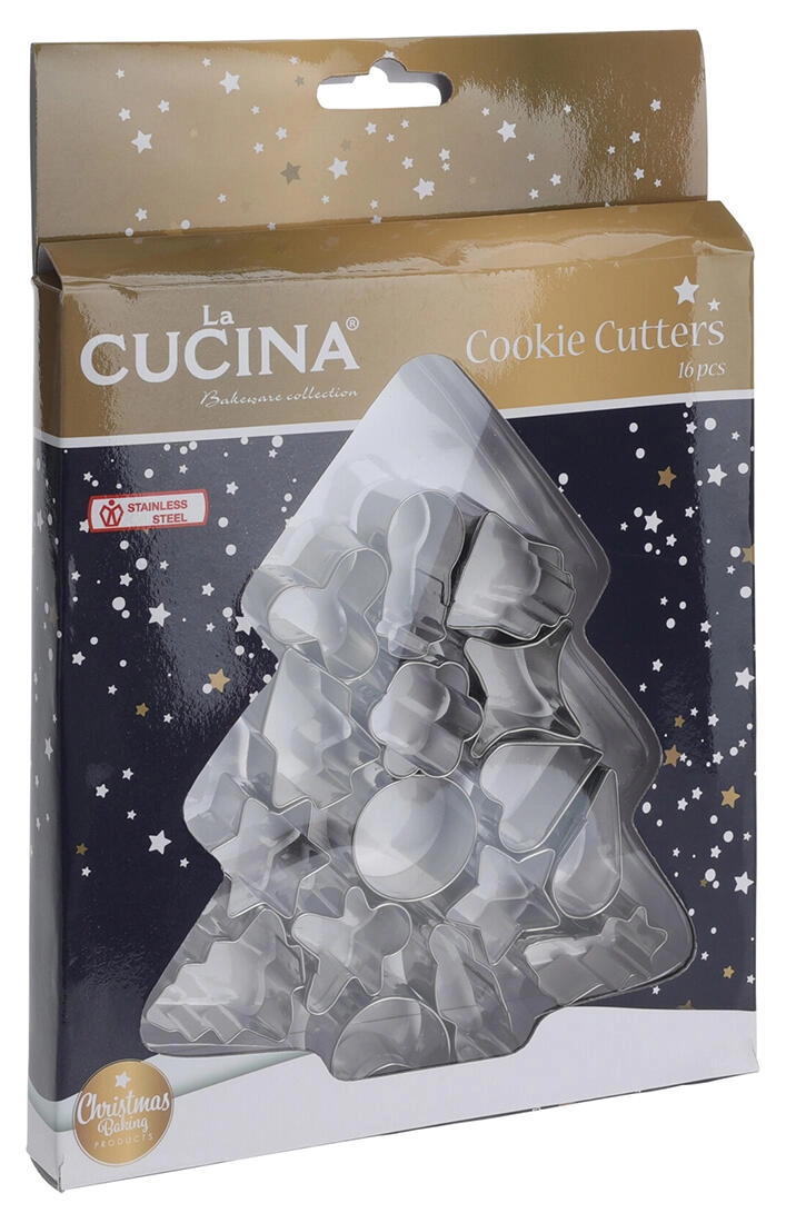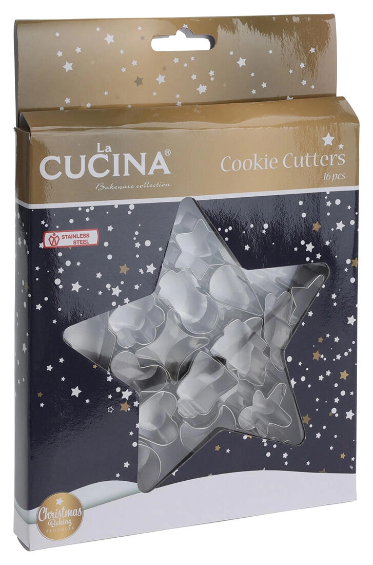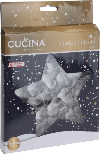 Ce set polyvalent de 16 emporte-pièces en inox est idéal pour préparer des biscuits de Noël traditionnels ou modernes. Grâce à la conception robuste en acier inoxydable de qualité, vous découpez facilement des formes nettes et précises qui ne se déforment pas à la cuisson.