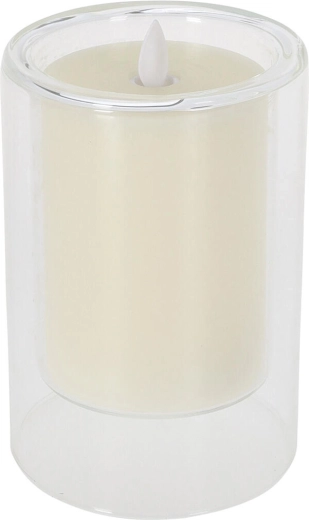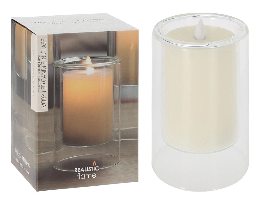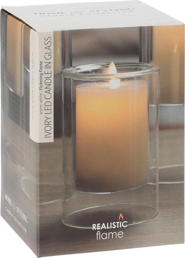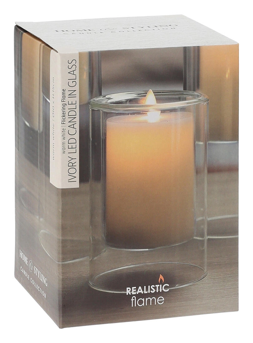 Cette bougie LED stylée aux dimensions 10 × 15 cm est placée dans un écrin de verre transparent qui souligne son design moderne. Sa délicate couleur Ivory s’intègre à tous les intérieurs et se marie facilement avec d’autres décorations.