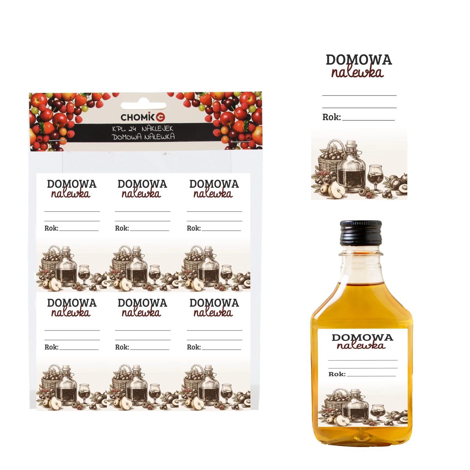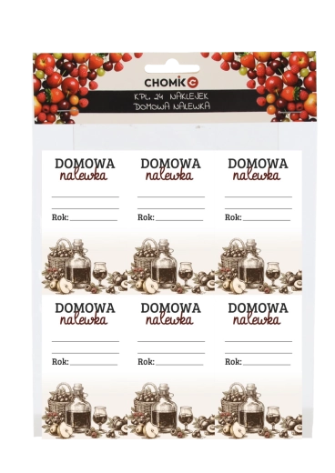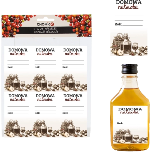 Le design universel « Domowa Nalewka » convient à une large palette de boissons maison – des liqueurs fruitées aux macérats aux herbes. L’étiquette offre beaucoup d’espace pour le nom de la liqueur, la date de production ou d’autres informations, afin que vos bouteilles soient clairement et élégamment identifiées.