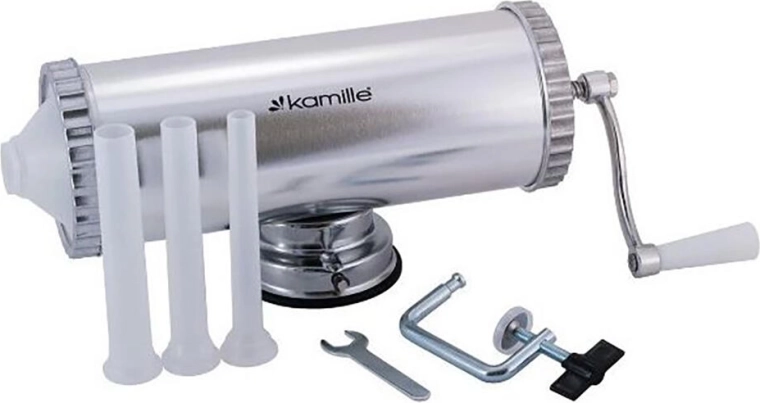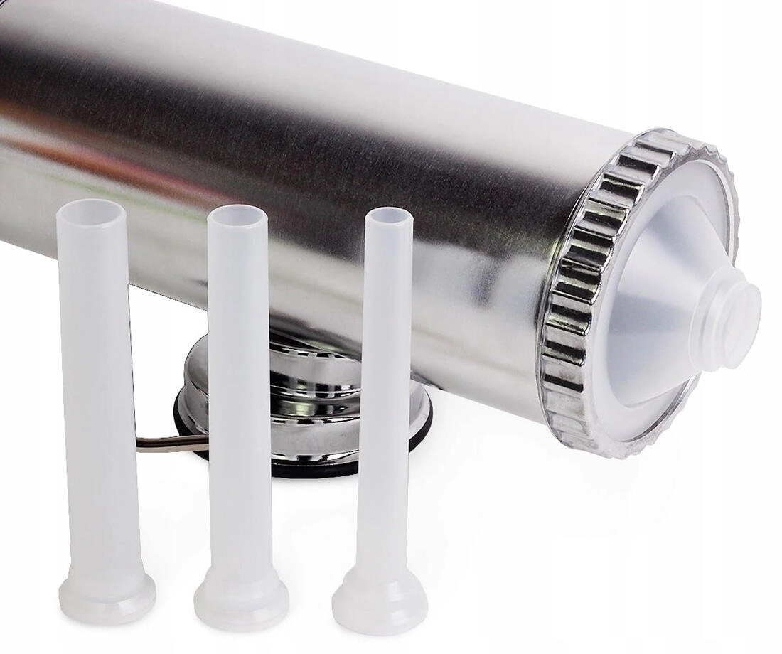 La ventouse puissante ainsi que la possibilité d’un montage par vissage garantissent une excellente stabilité pendant le travail. Le colis comprend 3 embouts de diamètres différents pour le remplissage des boudins, des saucisses fines et des kabanos. Les tubes interchangeables facilitent le changement rapide de taille selon la recette et le type de boyau.