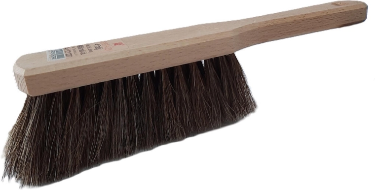 Balai à main de qualité en bois non verni, garni de pur crin de cheval pour un nettoyage délicat. Balaye parfaitement même la poussière très fine et, grâce aux fibres naturelles, ne génère pas d’électricité statique.