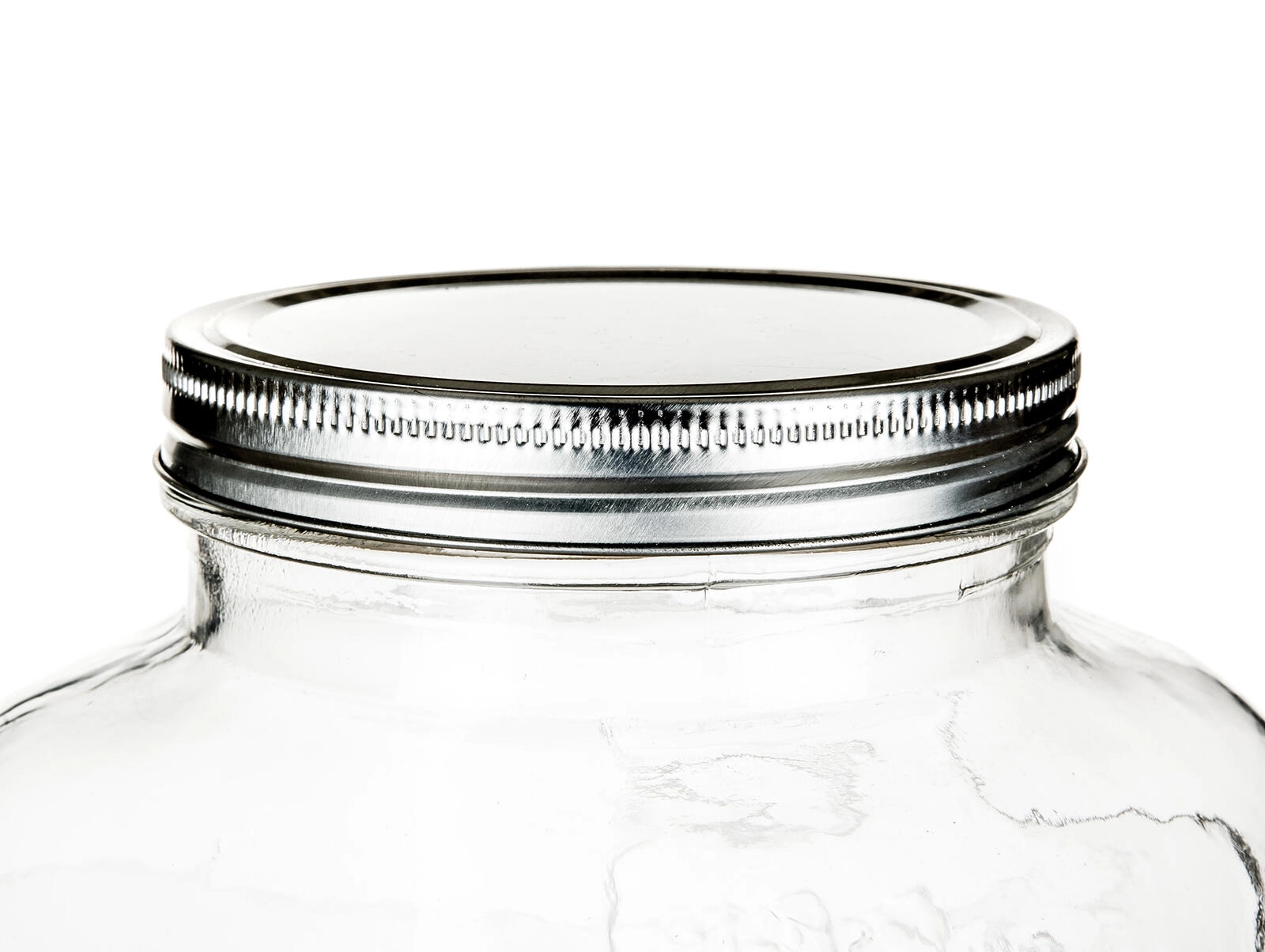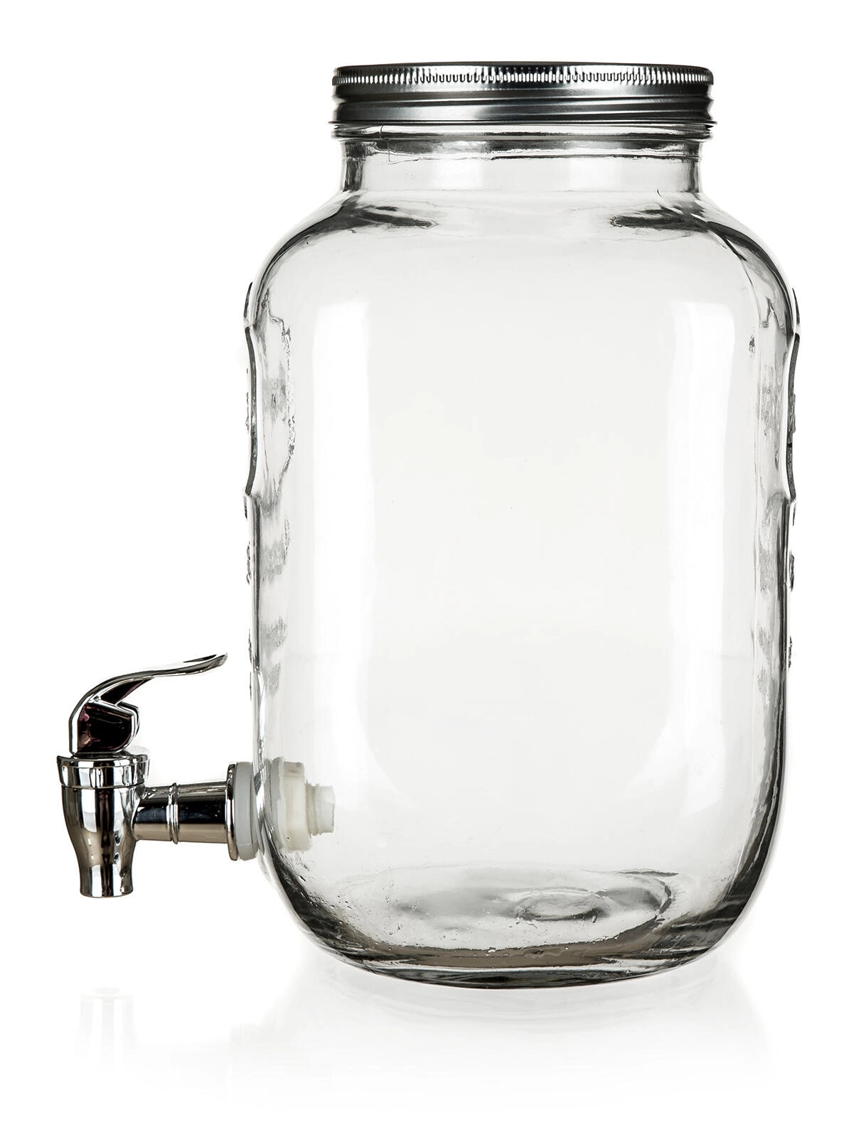 Le verre robuste assure stabilité et visibilité du contenu, tandis que le couvercle métallique protège les boissons des impuretés.
