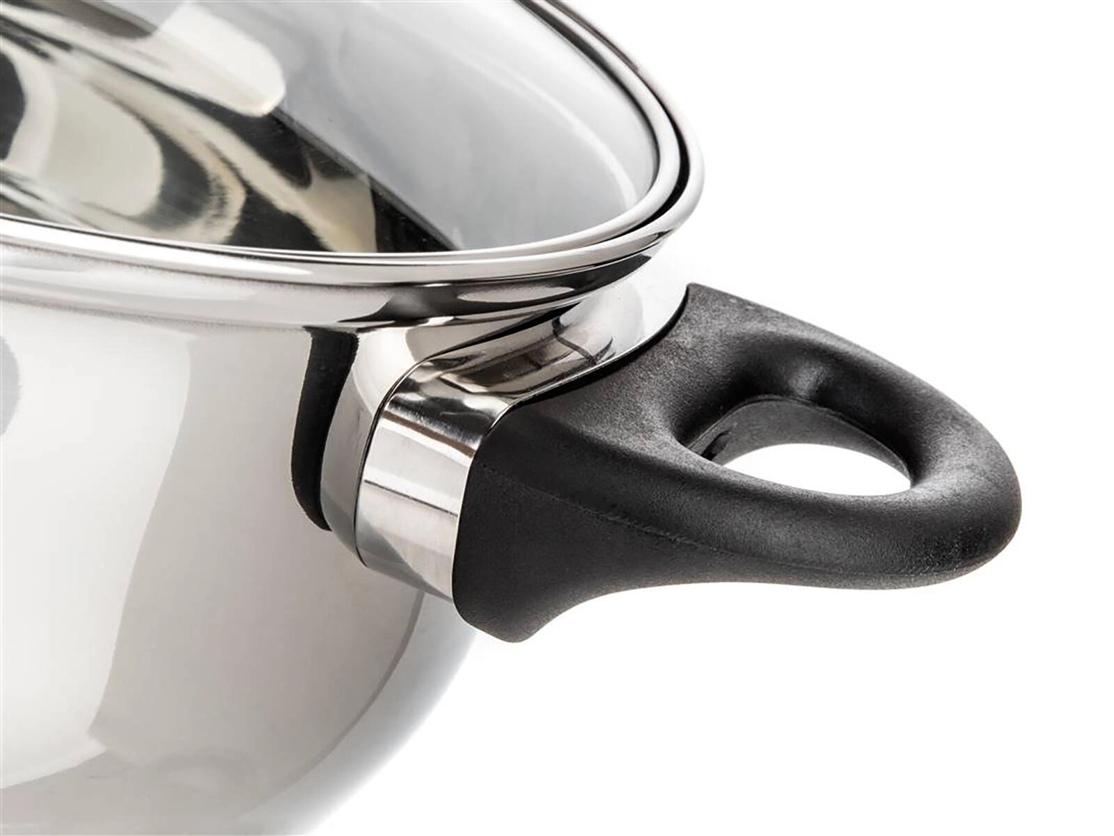 La casserole Super Value allie polyvalence et performances fiables. Grâce au couvercle en verre, vous gardez un contrôle total sur la cuisson, tandis que le corps robuste en inox à finition brillante apporte une touche d’élégance à votre cuisine. Les poignées ergonomiques en bakélite et le bouton garantissent une prise en main sûre et confortable, même à des températures élevées.