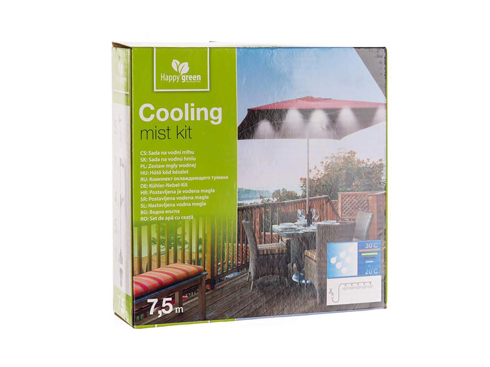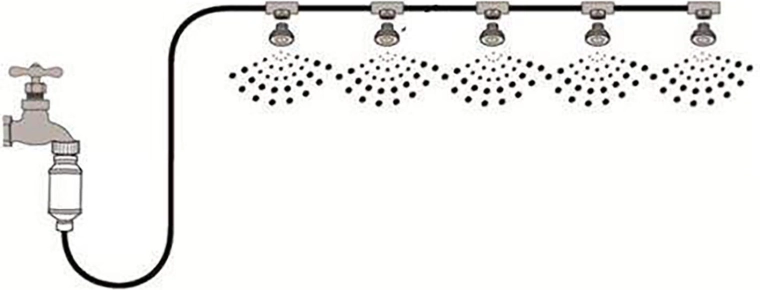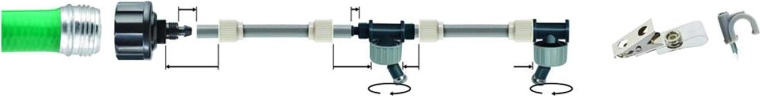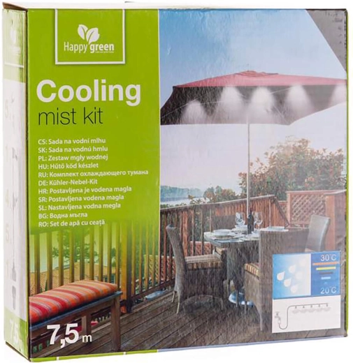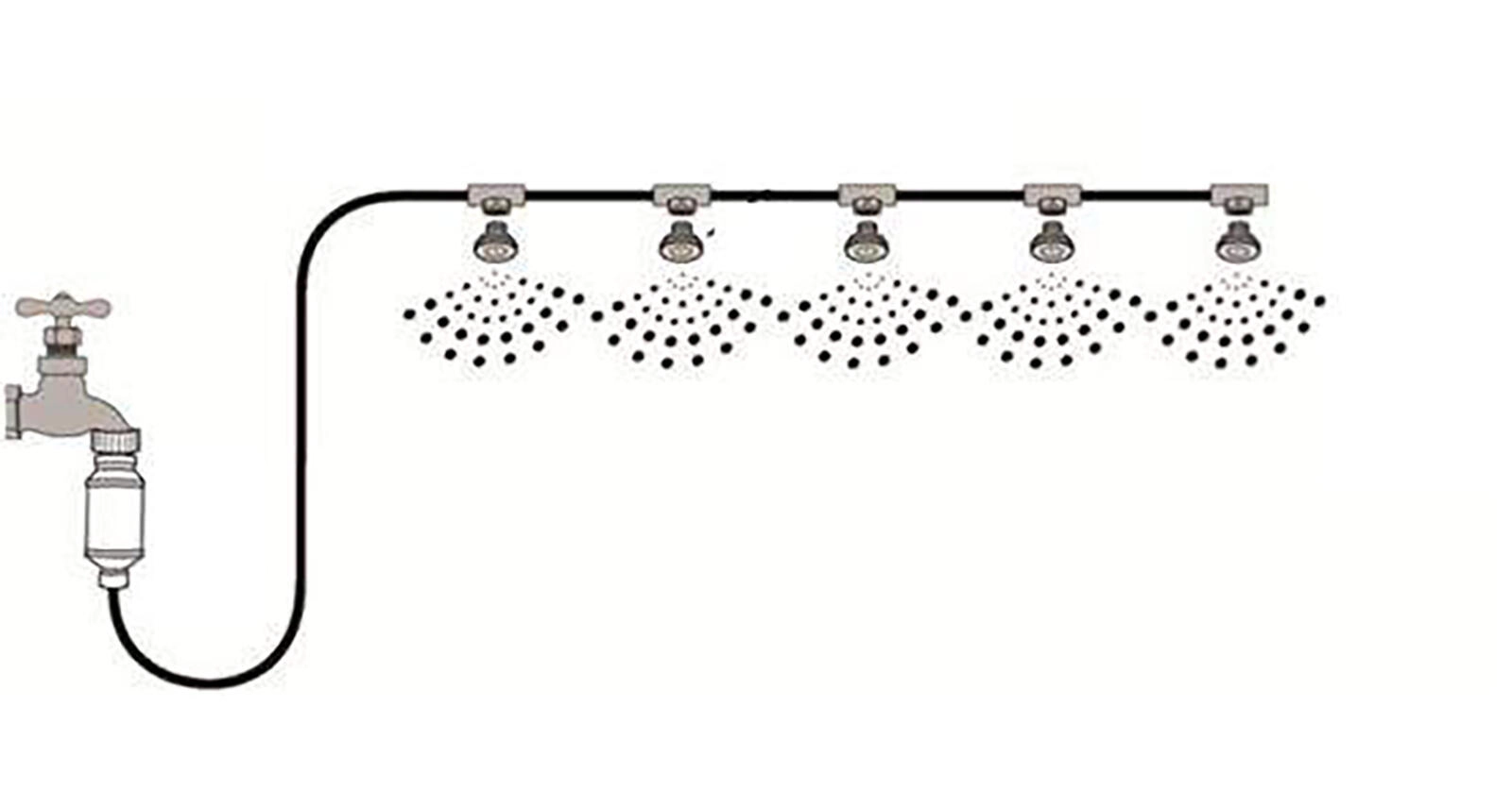 L’emballage comprend des clips de suspension pour une installation propre et un adaptateur pour robinet avec filtre. La brumisation convient aussi pour augmenter l’humidité dans les serres ou pour les espaces pour animaux. Pour un résultat optimal, veillez à une pression d’eau suffisante et orientez la brume de manière à ce qu’elle ne tombe pas directement sur les personnes, les surfaces glissantes ou les objets sensibles.