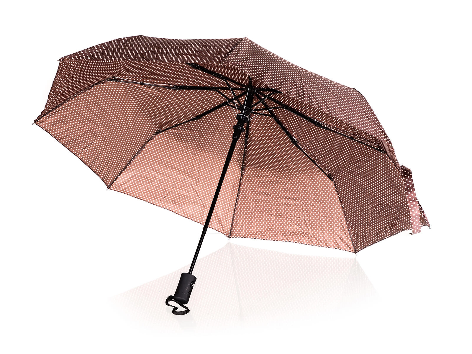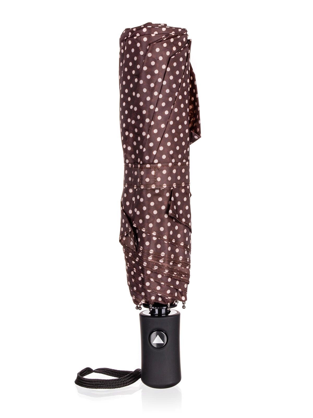 Un compagnon élégant et pratique pour le mauvais temps. Ce parapluie pliant marron à pois allie style et fonctionnalité : il est léger, compact et, grâce à l’ouverture automatique, prêt à l’emploi en un instant. Le polyester imperméable repousse efficacement l’eau, tandis que la structure robuste résiste aux rafales de vent.