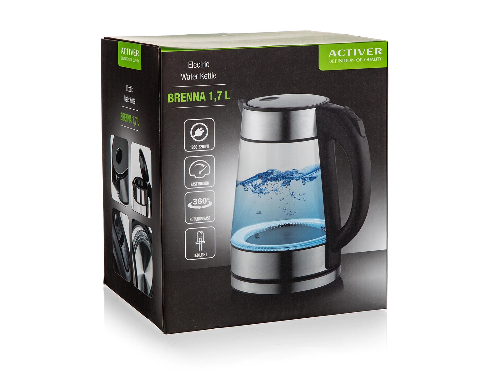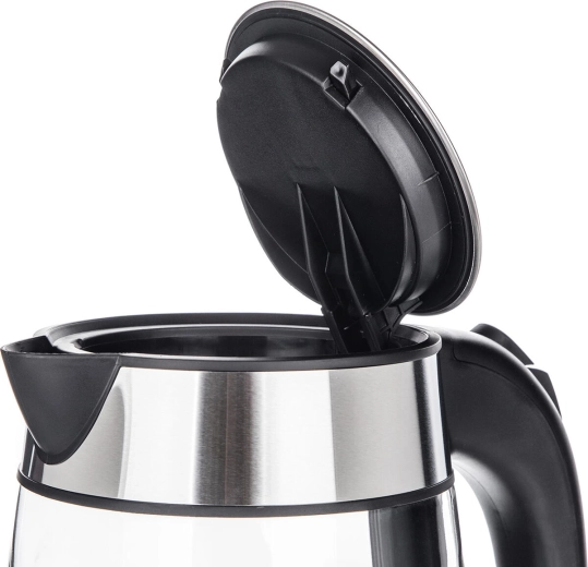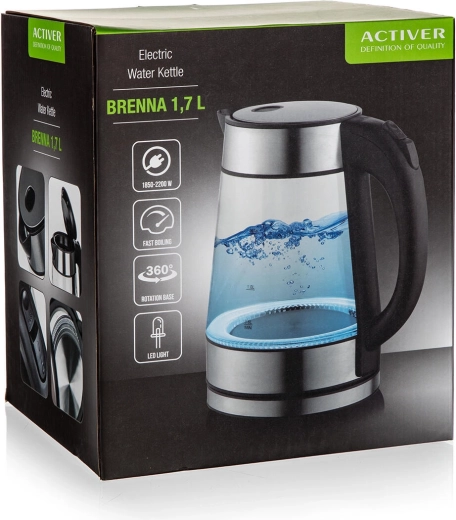 Élégante bouilloire électrique en verre BRENNA d’une capacité de 1,7 l offrant un chauffage rapide 1850–2200 W, une base rotative à 360° et un éclairage LED pour un contrôle parfait de l’ébullition. Grâce à son filtre amovible et à son arrêt automatique, l’utilisation est sûre et pratique.