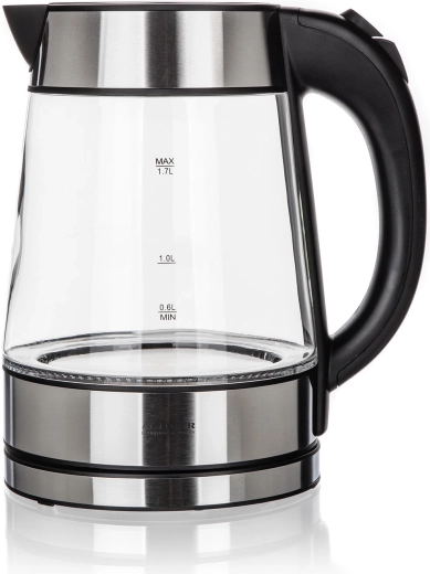 - Corps en verre de 1,7 l avec jauge de niveau lisible.