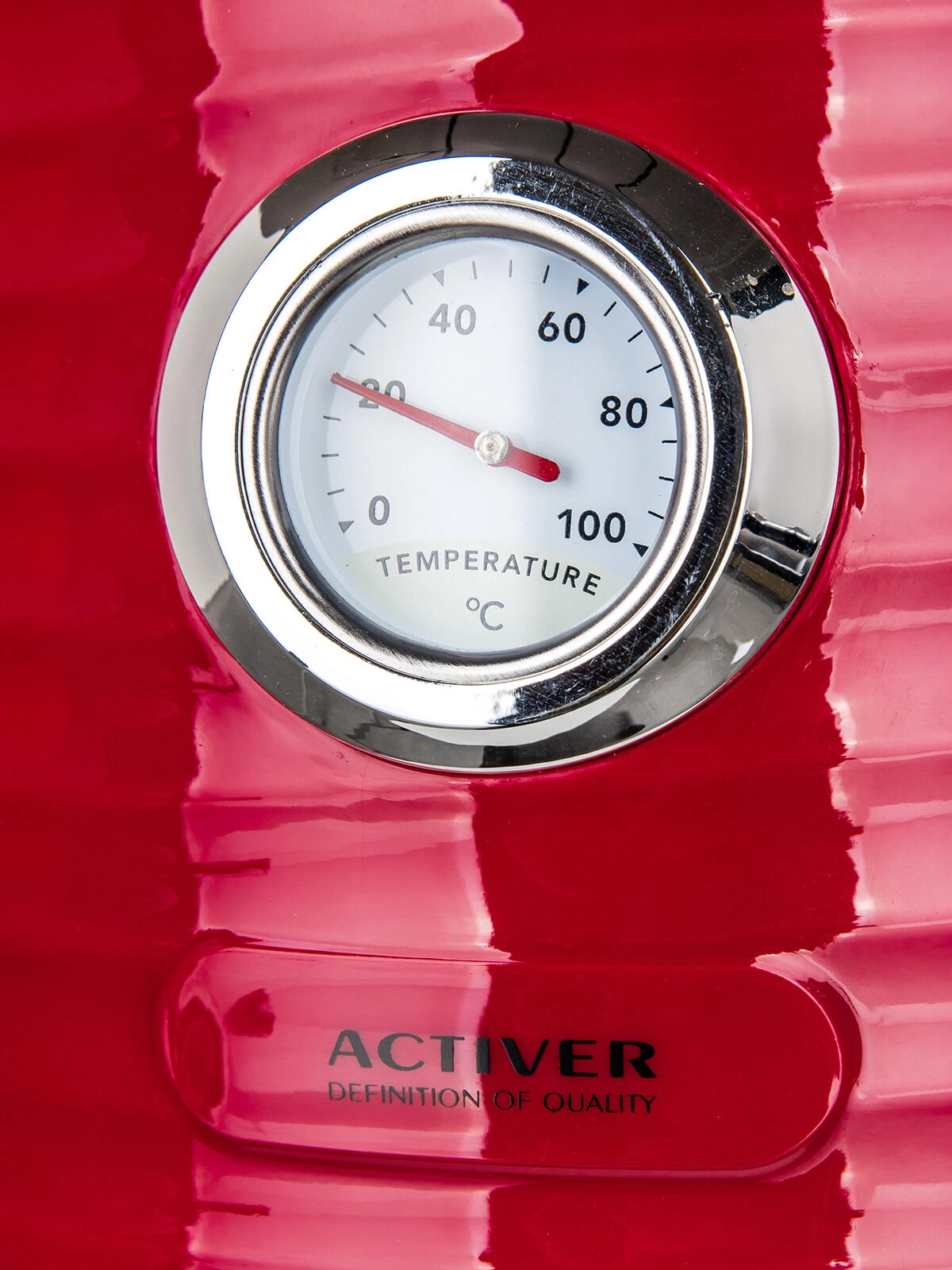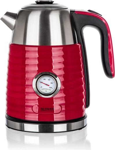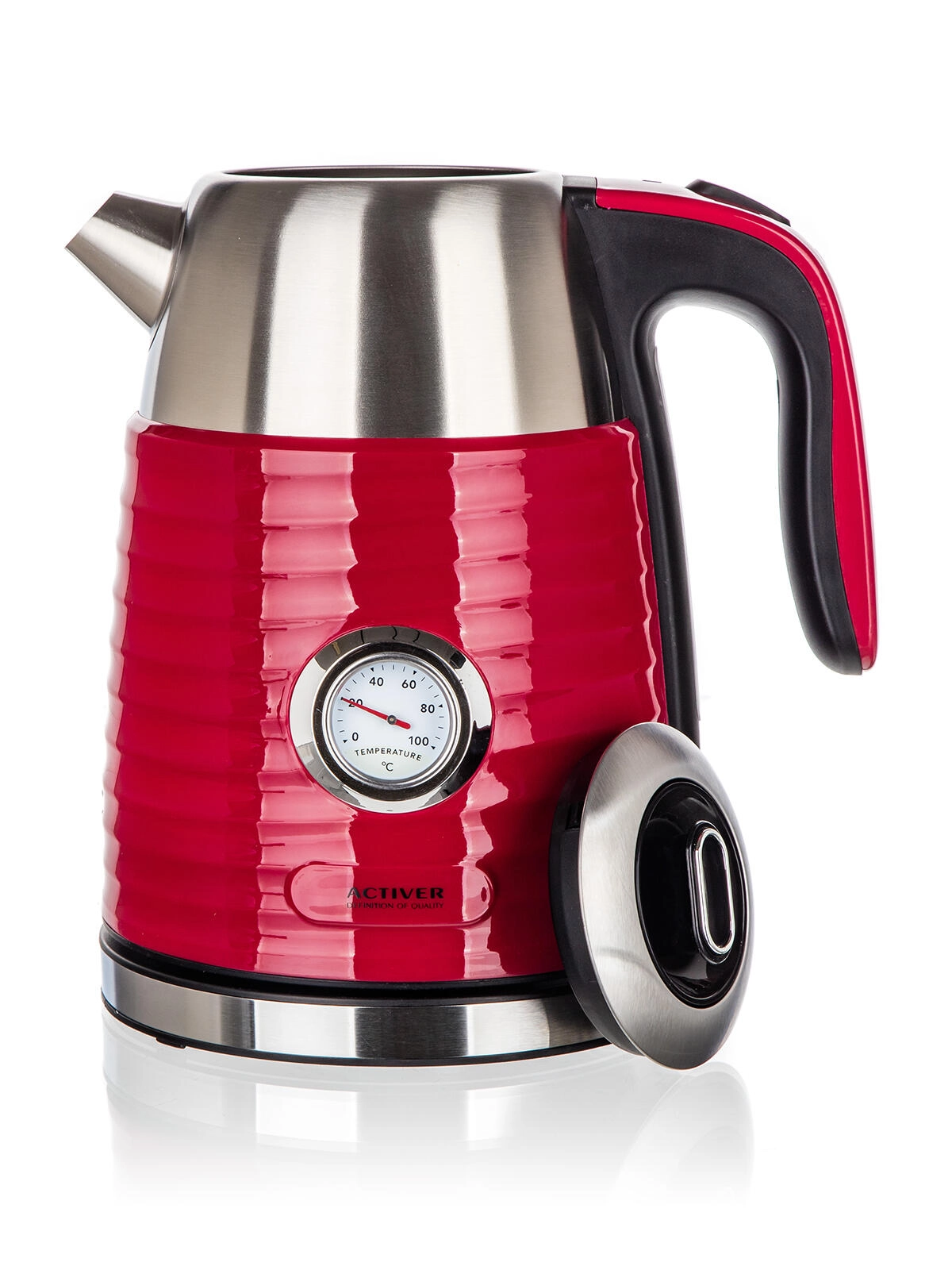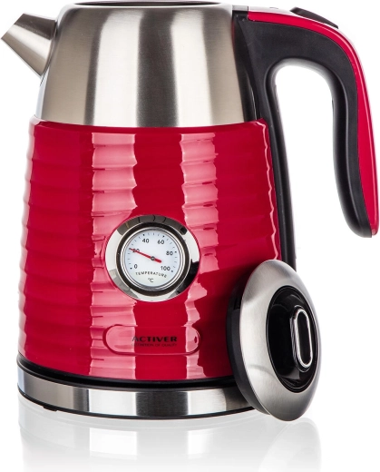 La bouilloire JUMPER de 1,7 l associe une élégante finition rouge à un intérieur en inox pratique. Sa construction à double paroi réduit le risque de brûlures en cas de contact accidentel et garde l’eau chaude plus longtemps pour un service progressif. Le thermomètre analogique intégré vous permet de suivre précisément la température de l’eau – idéal pour préparer des thés délicats, du café ou des boissons instantanées.
