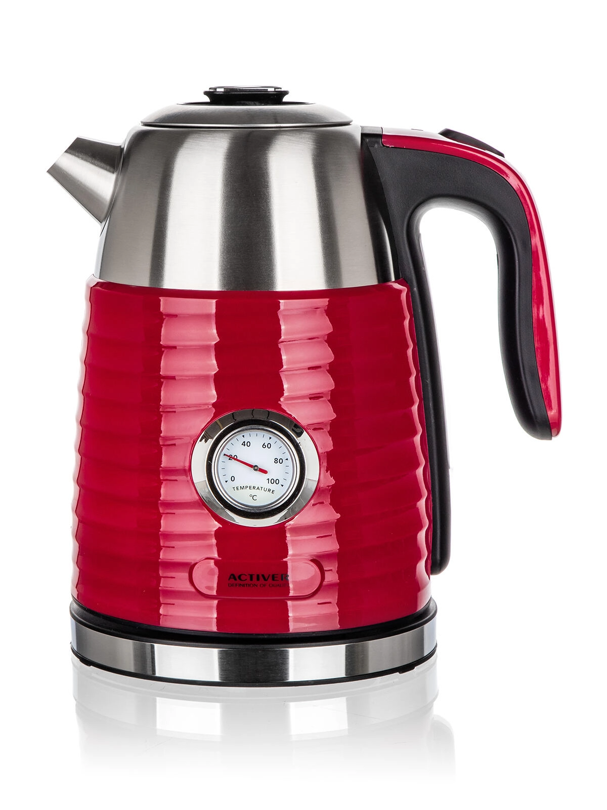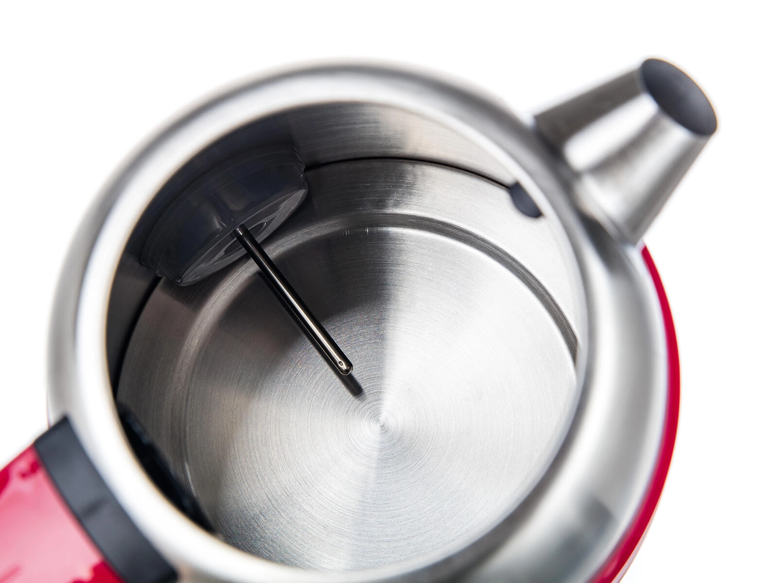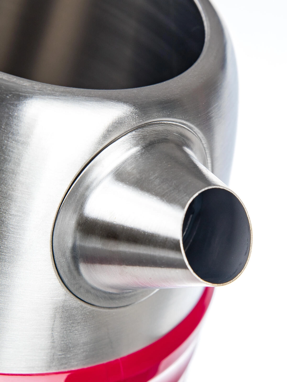 La bouilloire électrique JUMPER à double paroi d’une capacité de 1,7 l combine un corps en acier inoxydable et un plastique résistant pour un toucher sécurisé et une meilleure rétention de la chaleur. Grâce au thermomètre analogique intégré, vous surveillez facilement la température idéale de l’eau pour le thé ou le café. Elle dispose d’un arrêt automatique et manuel, d’une protection contre la surchauffe, d’une base rotative à 360° et d’un filtre anti-impuretés pour un versement plus propre.