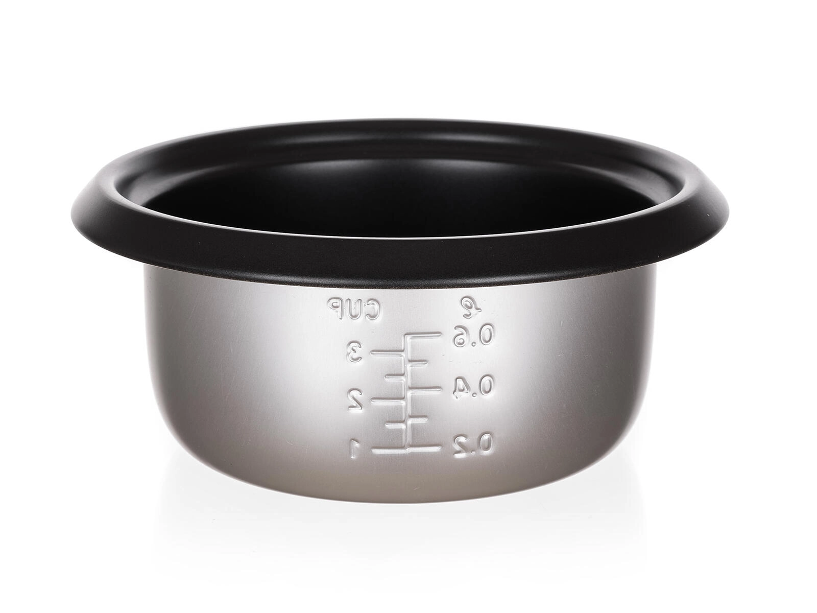 La cuve intérieure avec revêtement antiadhésif facilite la cuisson et le nettoyage. Le couvercle en verre avec valve permet de contrôler la cuisson sans le soulever inutilement.
