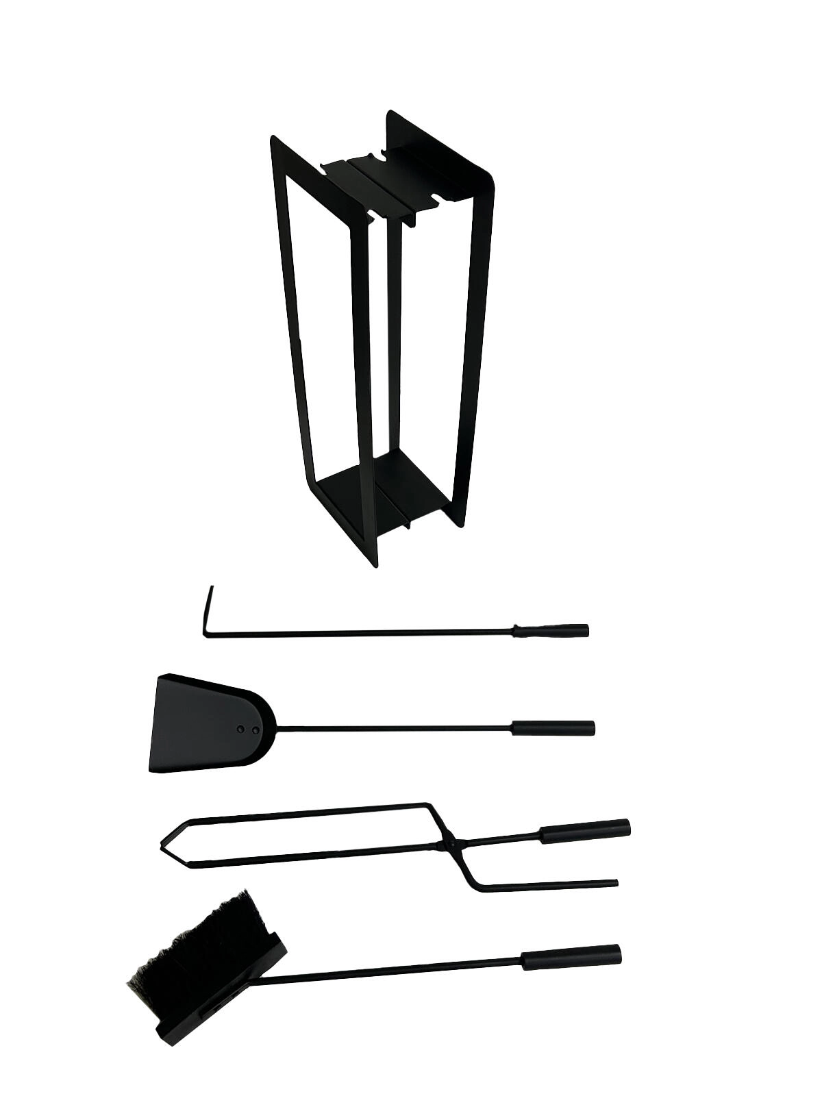 Quatre outils essentiels – balayette, pelle, tisonnier et pince – couvrent toutes les tâches, du nettoyage des cendres à l’ajout sécurisé de bûches.