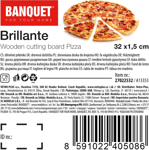 La planche à pizza en bois BRILLANTE, d’un diamètre de 32 cm, est idéale pour le service et la découpe. Fabriquée en bois de qualité, elle offre un aspect naturel, une grande résistance et une douceur pour les lames. Grâce à son épaisseur de 1,5 cm, elle est stable et facile à manipuler.
