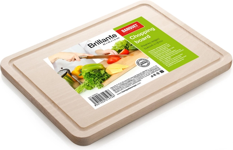 Découvrez la planche à découper BRILLANTE en hêtre, qui grâce à sa rainure sur le pourtour recueille les jus de viande, de fruits et de légumes, gardant ainsi le plan de travail propre. Le hêtre naturel confère à la planche robustesse, longévité et une allure élégante adaptée à toute cuisine.