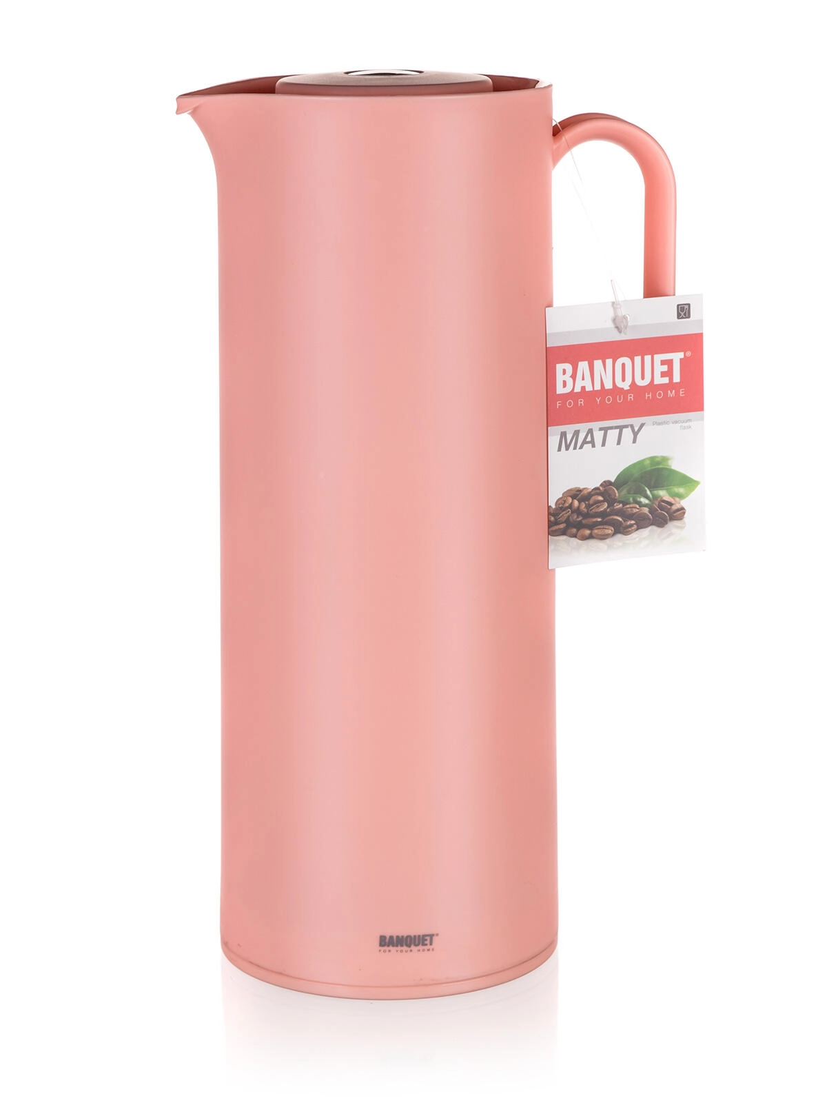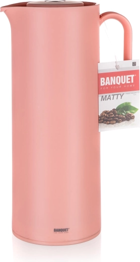 La thermocarafe BANQUET Matty rose de 1 l garde vos boissons chaudes ou froides pendant longtemps. Elle dispose d’un insert isolant en verre, d’un corps en plastique résistant et d’un couvercle pratique pour un service facile sans éclaboussures. Idéale pour le bureau, la maison et le service lors des visites.