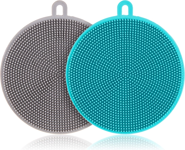 Éponges universelles en silicone de 11 cm de diamètre en lot avantageux de 2 pièces pour un lavage délicat et efficace. Grâce à leurs poils denses, elles nettoient en douceur sans rayer et sont faciles à entretenir – il suffit de les rincer ou de les mettre au lave-vaisselle. Silicone résistant, n’abîme pas les surfaces, entretien facile et utilisation polyvalente en cuisine.