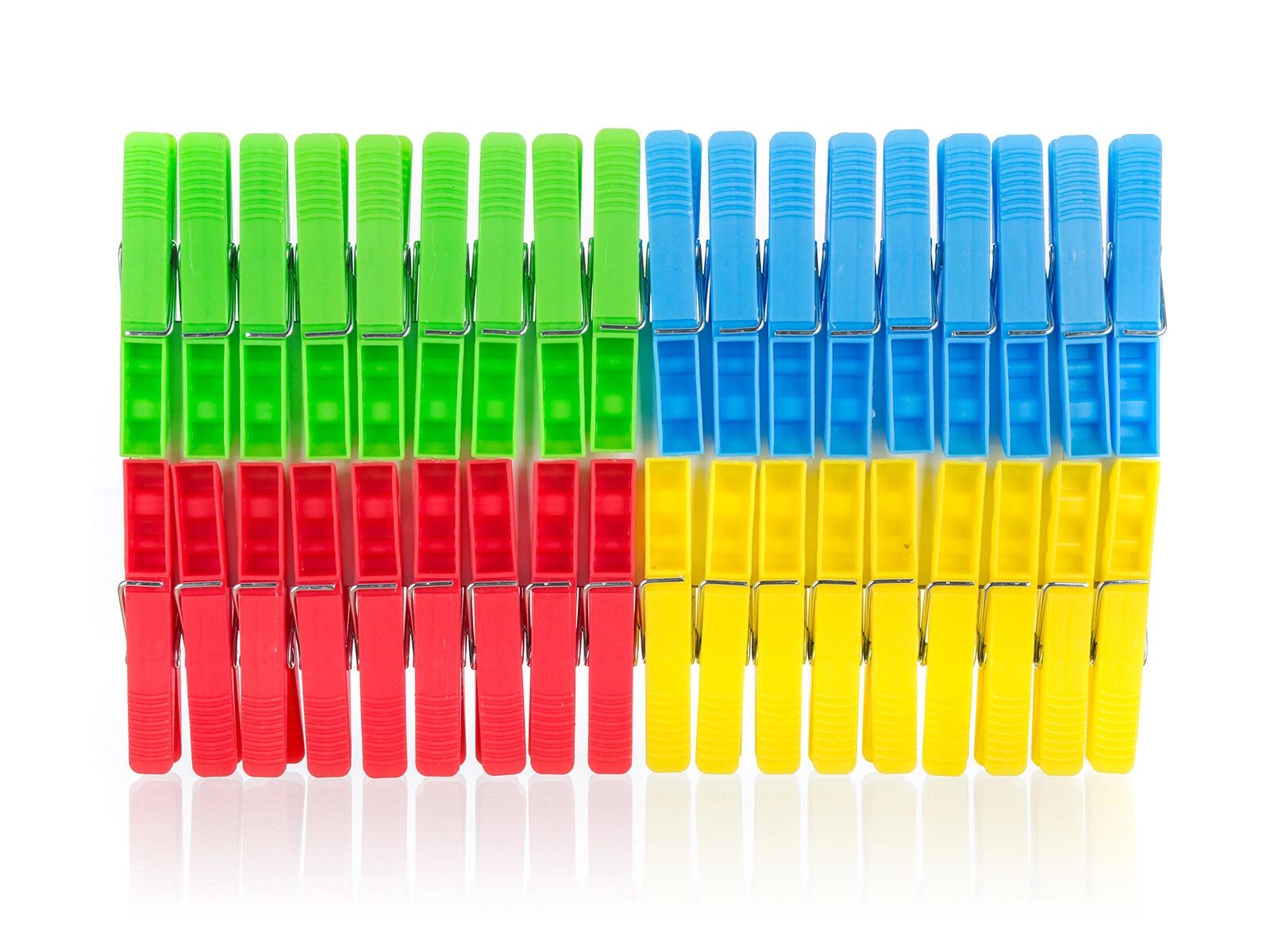 Pack de 36 pièces en jaune, rouge, bleu et vert pour un étendage clair et une identification facile.