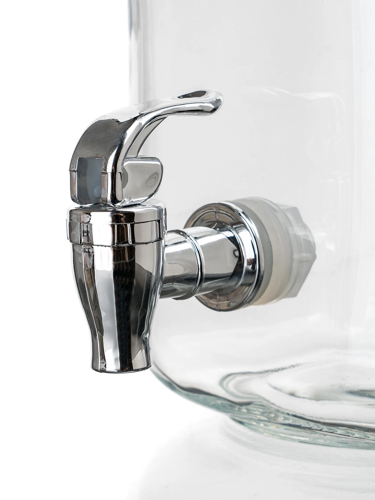 Ce distributeur universel en verre offre une manière élégante de servir des boissons fraîches lors de réunions familiales comme lors d’événements plus importants. Le verre transparent et limpide met joliment en valeur les couleurs des boissons, des fruits et des herbes, tout en permettant de contrôler facilement la quantité restante.