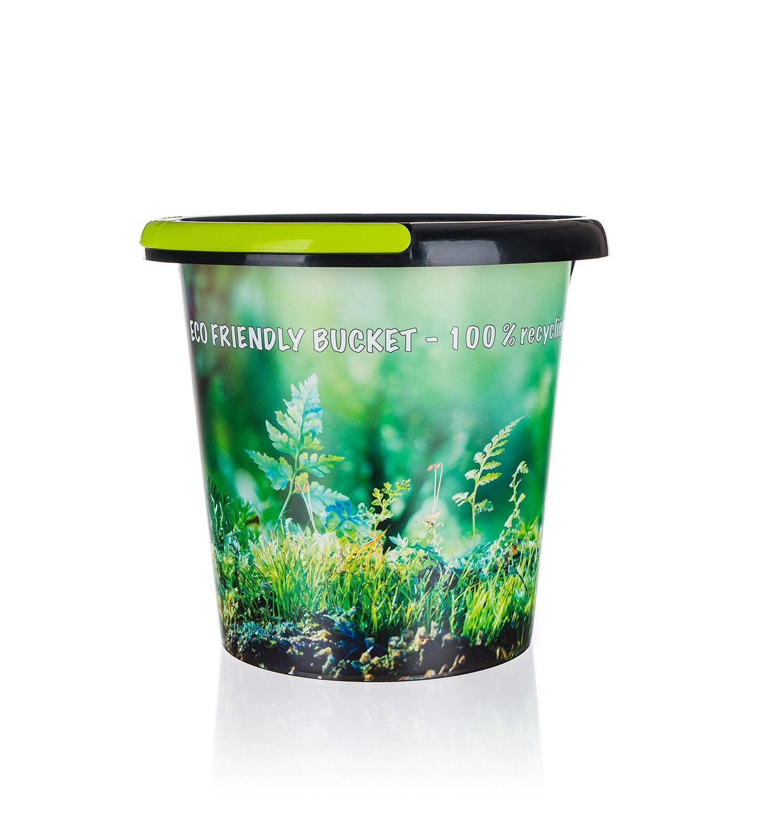 Le seau est fabriqué en plastique recyclé, ce qui préserve les ressources et réduit l’empreinte écologique sans compromis sur la résistance.