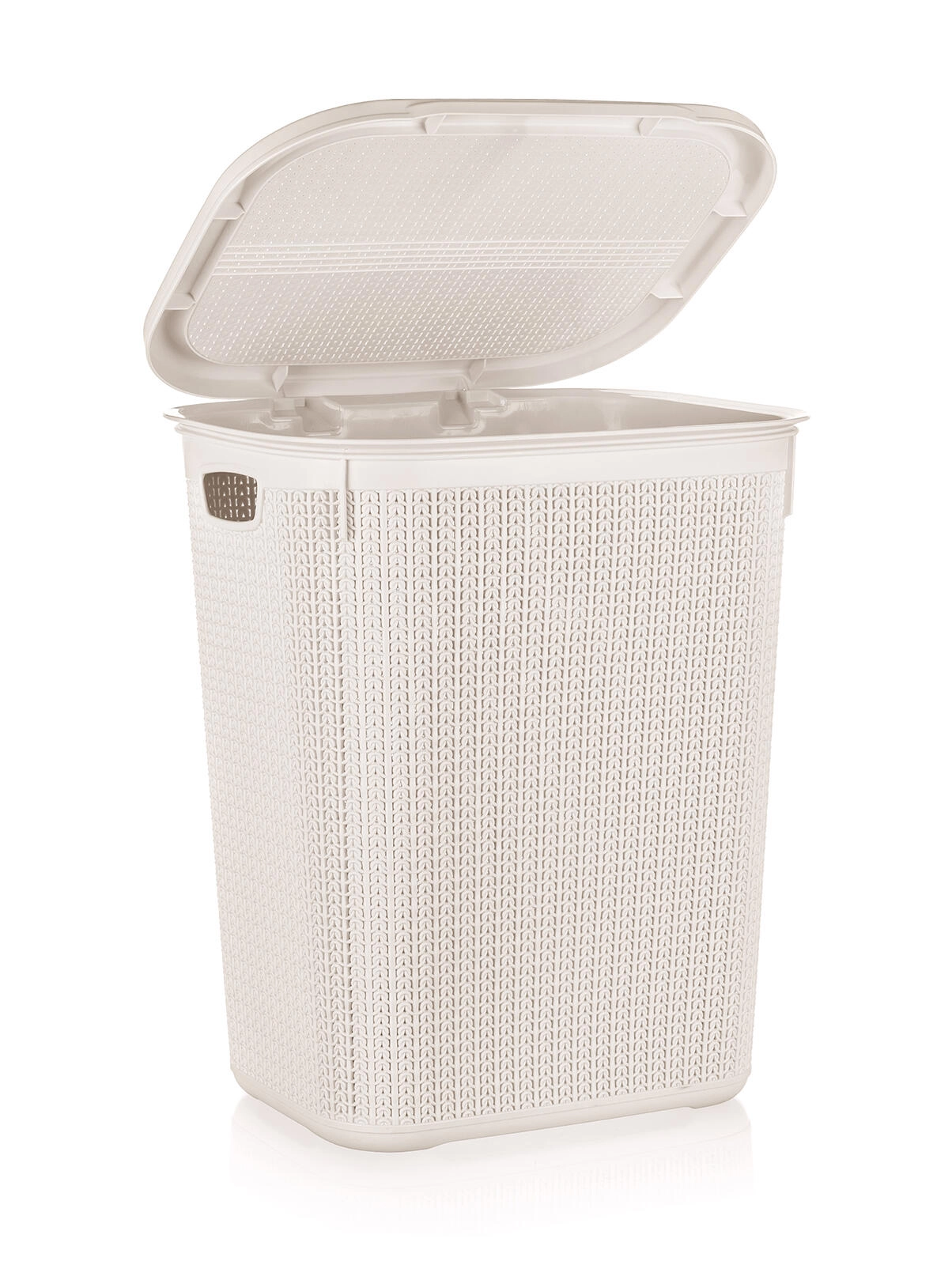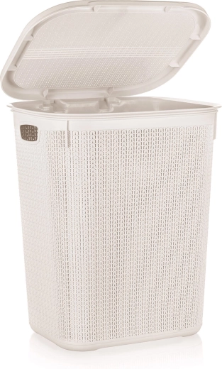 Panier à linge pratique de 50 l au look rotin, idéal pour chaque foyer. Grâce au couvercle, il dissimule le contenu et garde la salle de bain ou la buanderie ordonnée. Le plastique résistant garantit une longue durée de vie, un entretien facile et un poids réduit. L’élégante couleur crème s’adapte à la plupart des intérieurs.