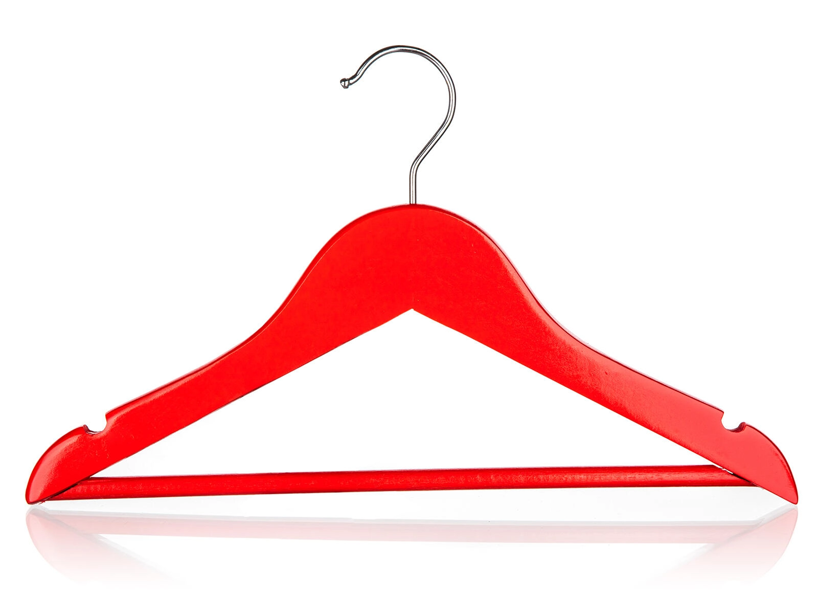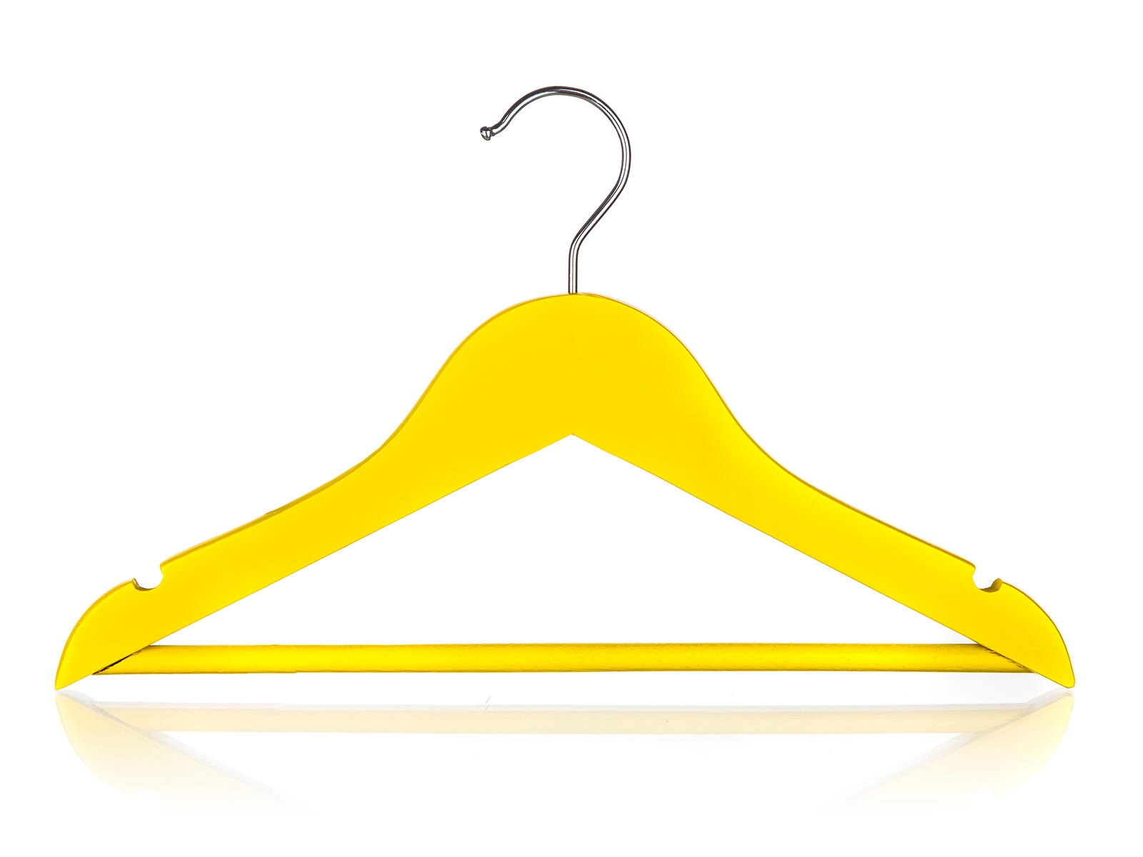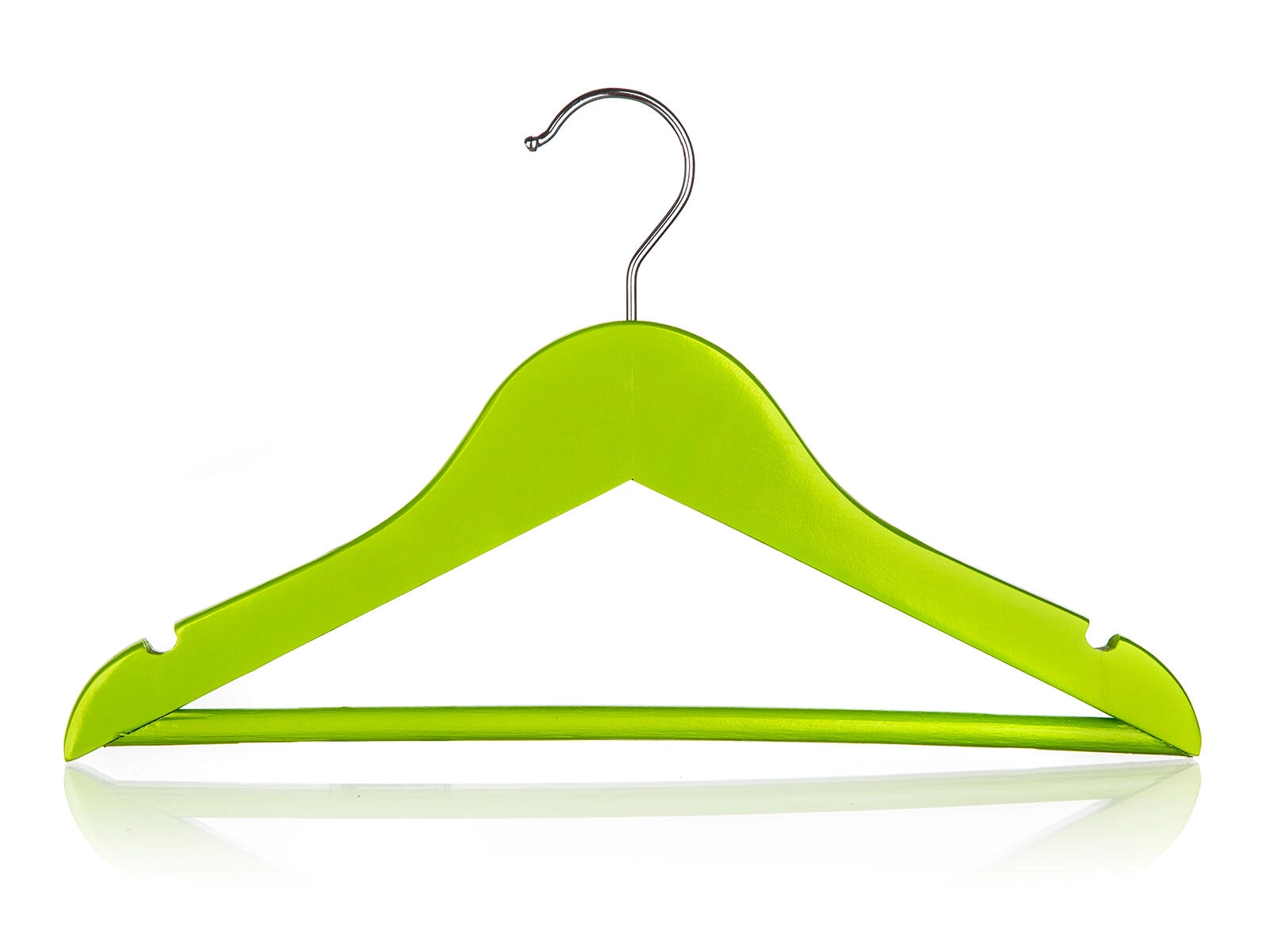 Grâce aux encoches pratiques, même les vêtements à bretelles restent en place, le vernis lisse protège les tissus contre les accros et le crochet en métal assure une manipulation aisée sur la tringle. Le mélange de couleurs (jaune, rose, rouge, bleu, vert) égaye l’armoire des enfants et facilite le tri par couleur.