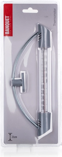Thermomètre de fenêtre pratique de 23 cm, combinant plastique et métal, pour un suivi précis de la température extérieure. Il offre une échelle claire allant de -50 à +50 °C et une installation simple. Des vis de fixation sont incluses dans l’emballage. La finition argentée élégante s’harmonise avec la plupart des fenêtres.