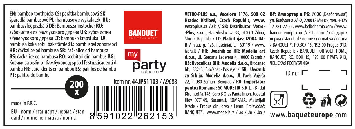 Ce set propose 200 cure-dents en bambou de qualité, rangés dans un distributeur rond pratique. Grâce aux pointes affûtées des deux côtés, vous retirez facilement les restes d’aliments ou piquez élégamment canapés et mignardises. Le bambou est un matériau solide, lisse et naturellement résistant, tout en étant respectueux de la nature.