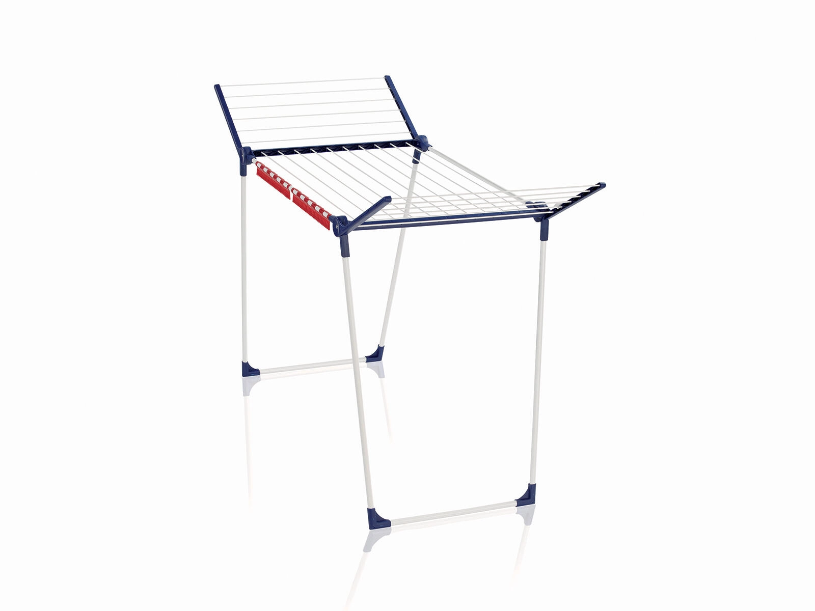 La surface de séchage pratique de 18 mètres peut accueillir jusqu’à 2 machines, ce qui permet d’économiser du temps et de l’espace. Le colis comprend 2 easyclips qui permettent un séchage rapide et économique des petites pièces sans pinces. Les ailes d’une hauteur de 105 cm sont parfaites pour sécher pantalons, robes ou serviettes sans les froisser.