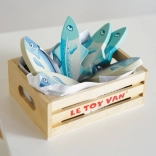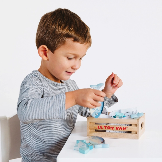 Cette boîte en bois avec des poissons est parfaite pour les jeux de rôle et l'éducation sur différents types d'aliments. Elle encourage des habitudes alimentaires saines et constitue un excellent complément à toute cuisine ou stand de marché pour enfants.