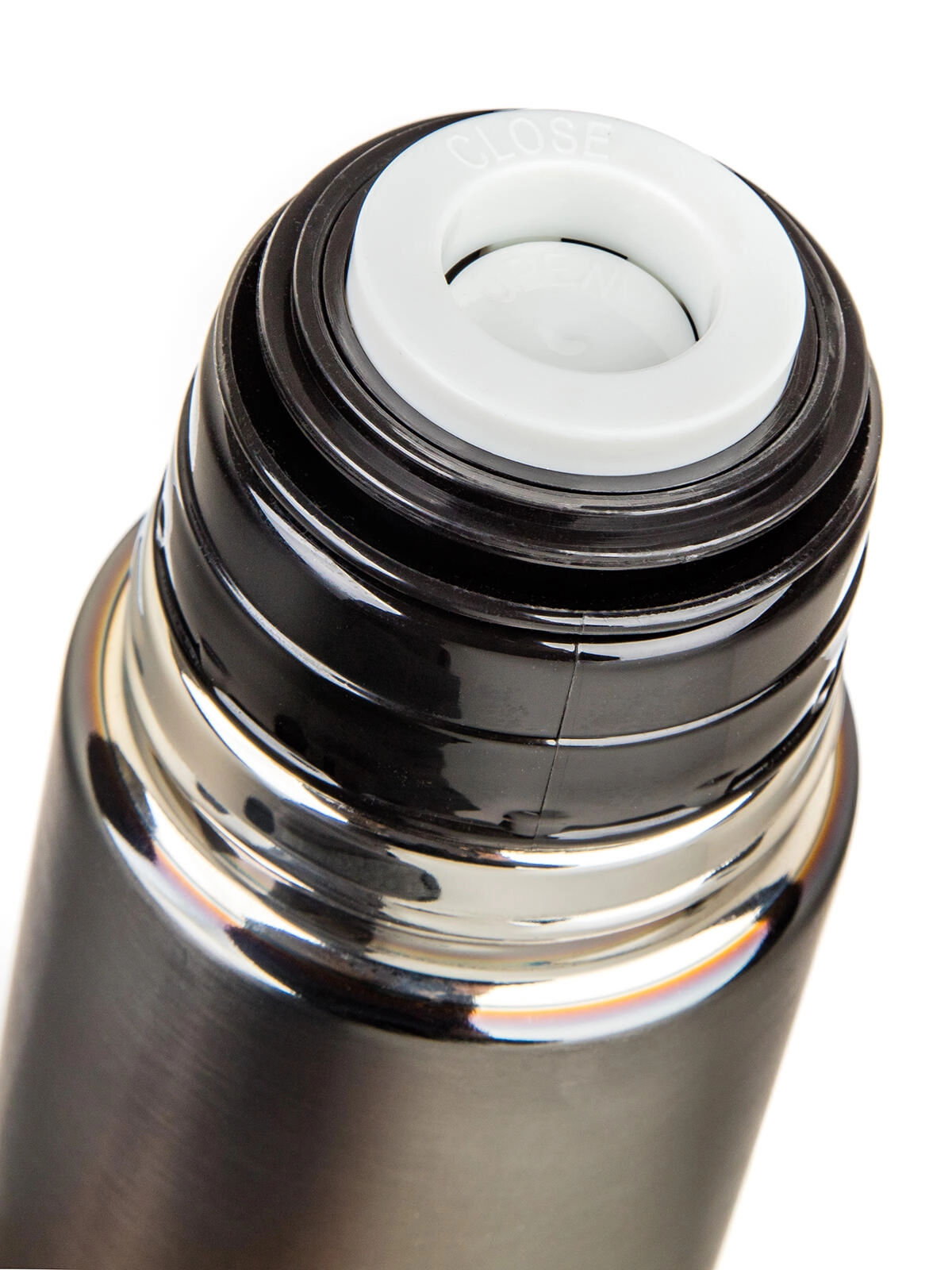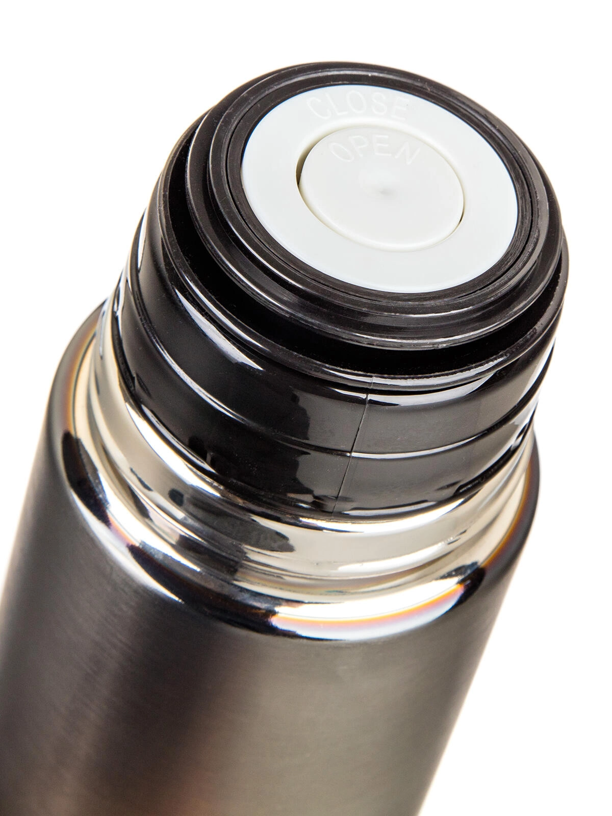La thermos AVANZA, dans une élégante couleur noir métallisé, est fabriquée en acier inoxydable résistant (surface extérieure et intérieure). La construction à double paroi sous vide limite efficacement les pertes de chaleur comme de froid, pour déguster votre boisson préférée à la bonne température plus longtemps. Le bouchon vissé avec bouton permet un service sûr et pratique sans dévissage inutile.