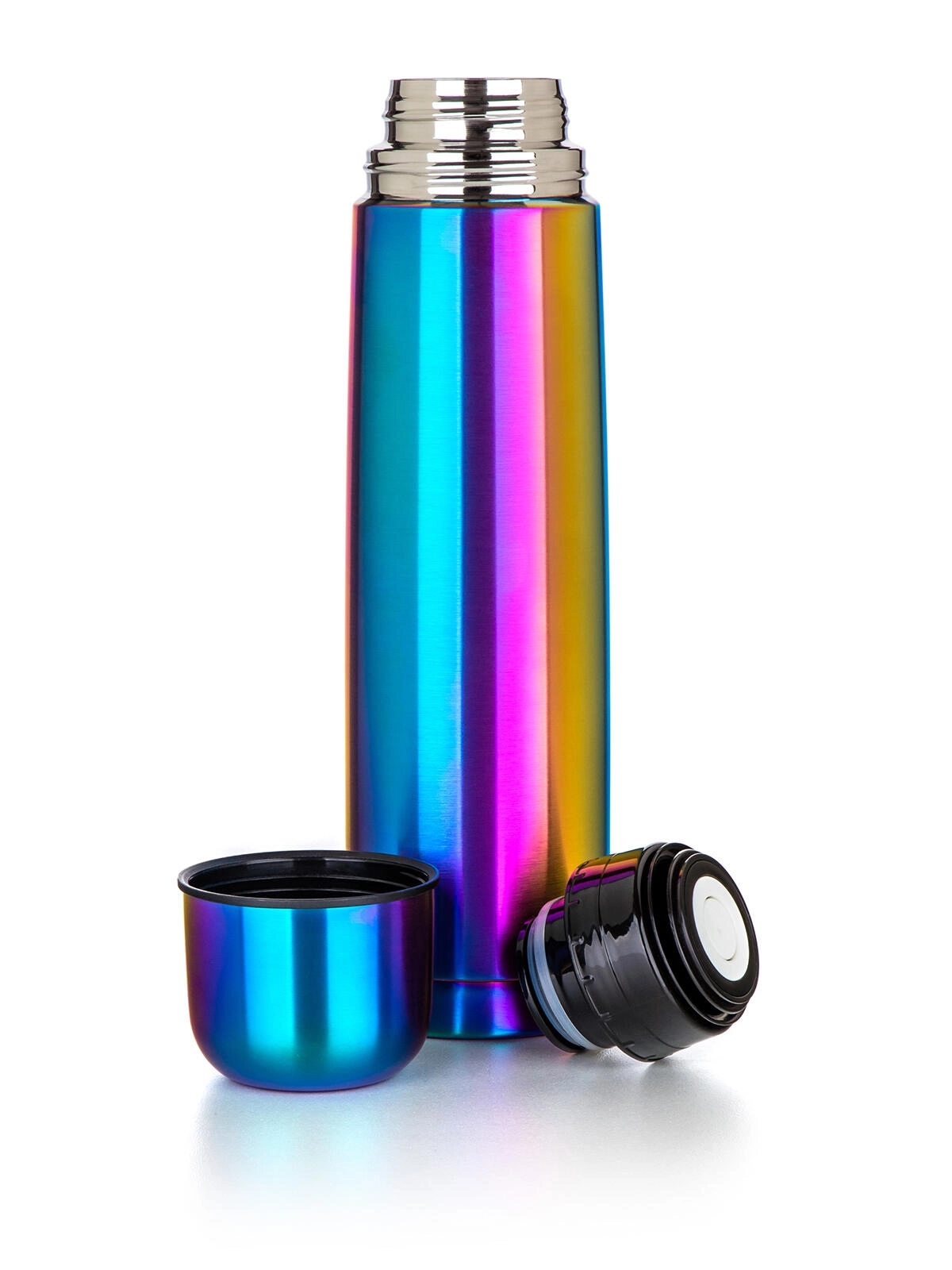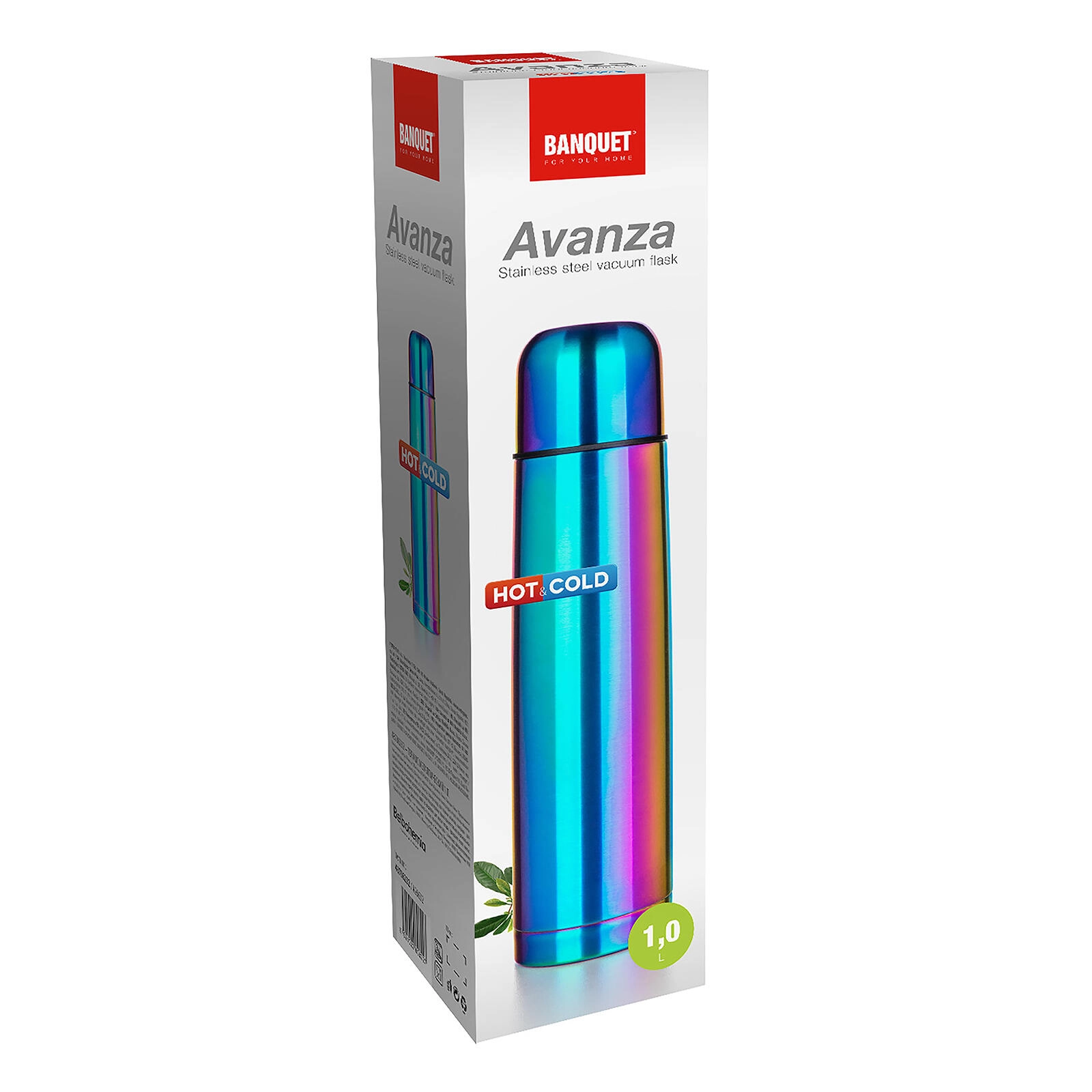 La thermos AVANZA d’un volume de 1 litre est la compagne idéale au travail, à l’école et en excursion. Grâce à son isolation à double paroi sous vide et à sa conception tout inox (surface intérieure et extérieure en acier inoxydable 201), elle maintient la température de la boisson durablement. La finition arc‑en‑ciel mate confère à la bouteille un look élégant et distinctif.