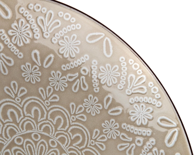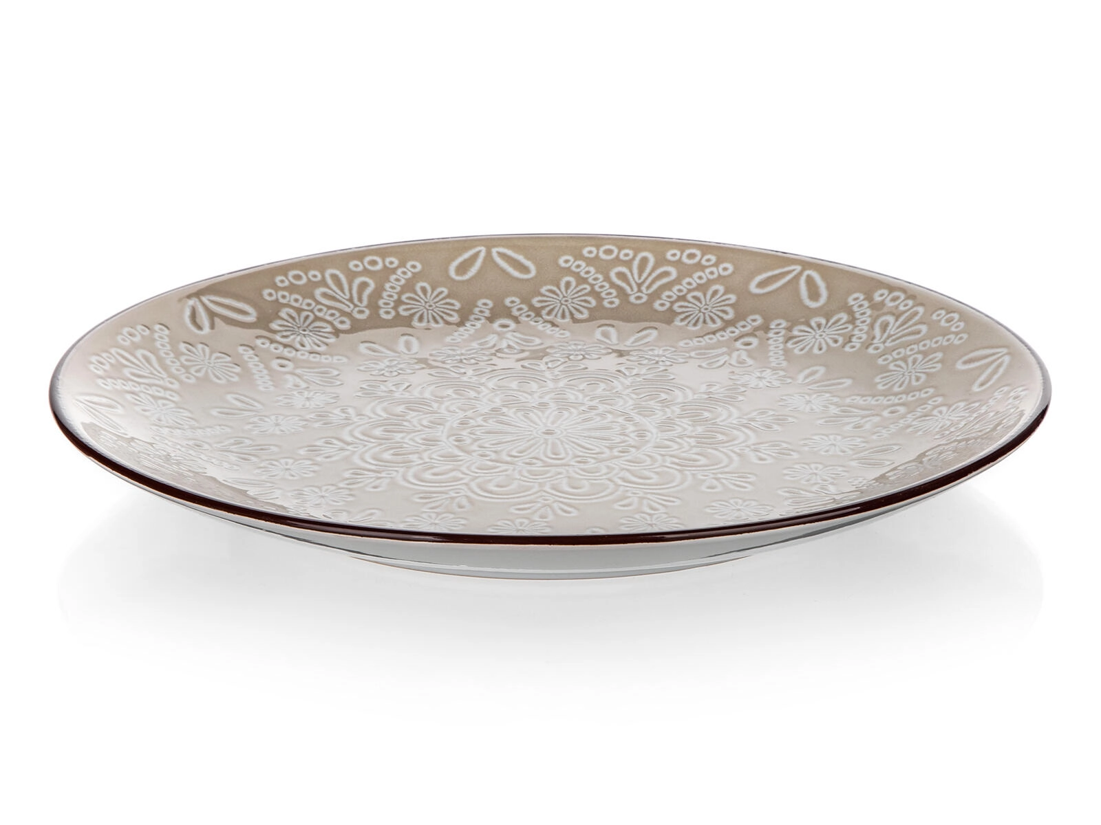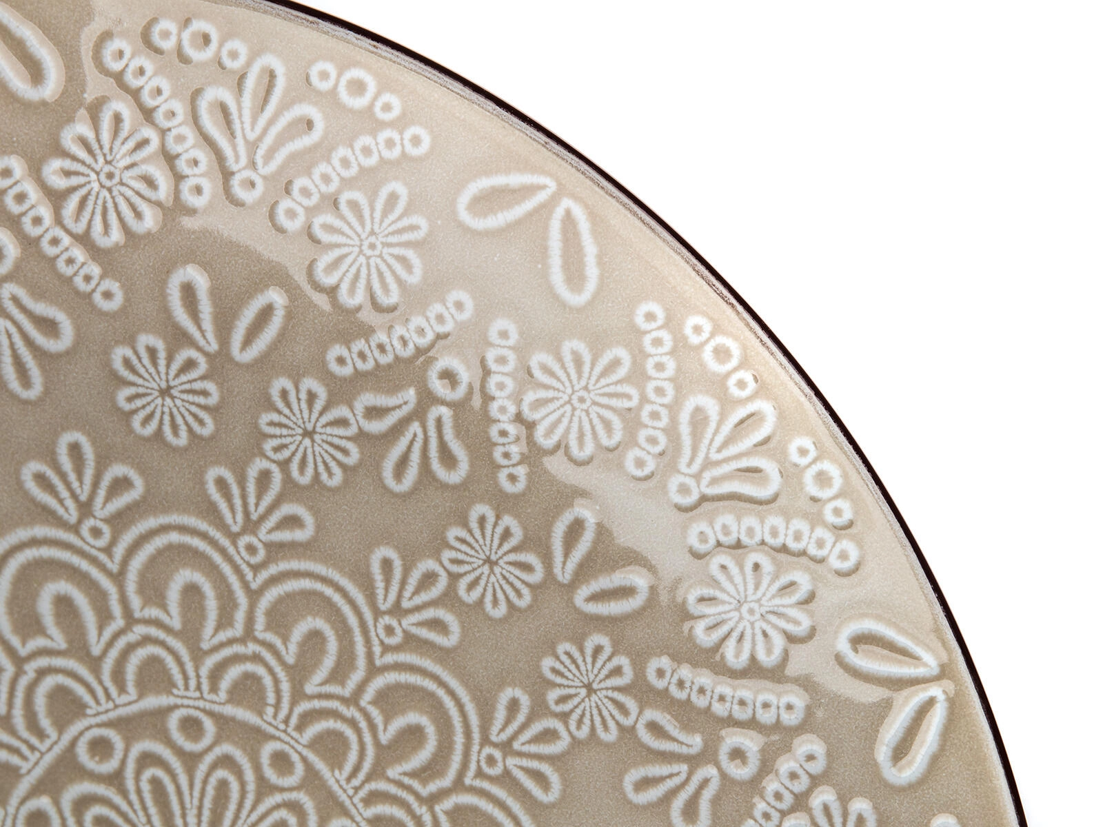 Le motif dentelle embossé avec un liseré plus foncé confère à l’assiette un caractère unique et transforme chaque service en une expérience esthétique.