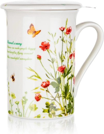 Le motif discret de fleurs des prés fait de ce mug un accessoire élégant pour la maison comme pour le bureau – idéal comme cadeau pour les amateurs de thé.