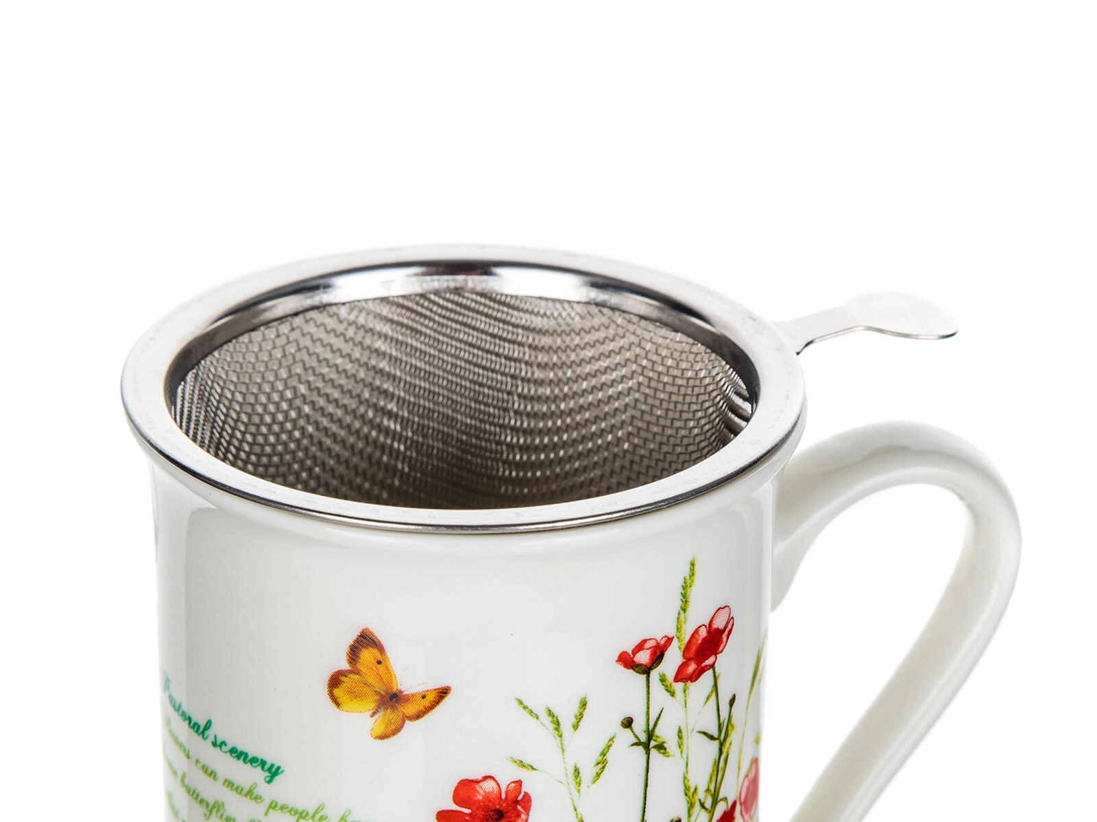 Le mug stylé MEADOW FLOWERS allie charme et fonctionnalité. Grâce au filtre inox à maille fine, préparez votre thé en vrac préféré directement dans le mug, tandis que le couvercle en céramique garde la boisson chaude plus longtemps. Après l’infusion, le couvercle sert de sous-verre pratique pour déposer le filtre.