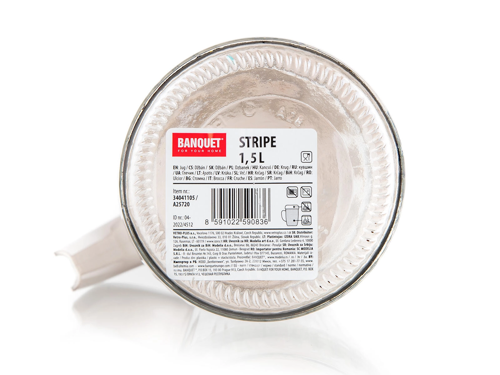 La carafe en verre Stripe 1,5 l est idéale pour l’eau, les citronnades, le thé glacé et les jus maison. Le corps rainuré (ribbed) apporte une touche moderne tout en assurant une meilleure prise en main. Le couvercle pratique en plastique avec bec rabattable facilite un versement précis et protège la boisson des impuretés.