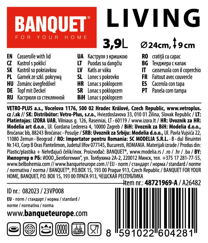 La casserole en inox LIVING de 3,9 l est un choix polyvalent pour toute cuisine. Grâce au couvercle en verre, vous gardez en permanence le contrôle de la cuisson, tandis que la construction en acier inoxydable garantit une longue durée de vie et un entretien facile. La surface brillante ornée de bandes mates décoratives apporte une touche d’élégance à votre cuisine.