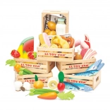 Cette caisse en bois avec produits laitiers de la marque Le Toy Van est idéale pour les enfants qui aiment jouer à la marchande ou à la cuisine. Le set comprend une bouteille de lait, du beurre, du yaourt, de la crème et trois types de fromages, chaque élément étant conçu pour sembler réaliste. Ces jouets sont non seulement amusants, mais aussi éducatifs car ils aident les enfants à comprendre l'importance d'une alimentation équilibrée.