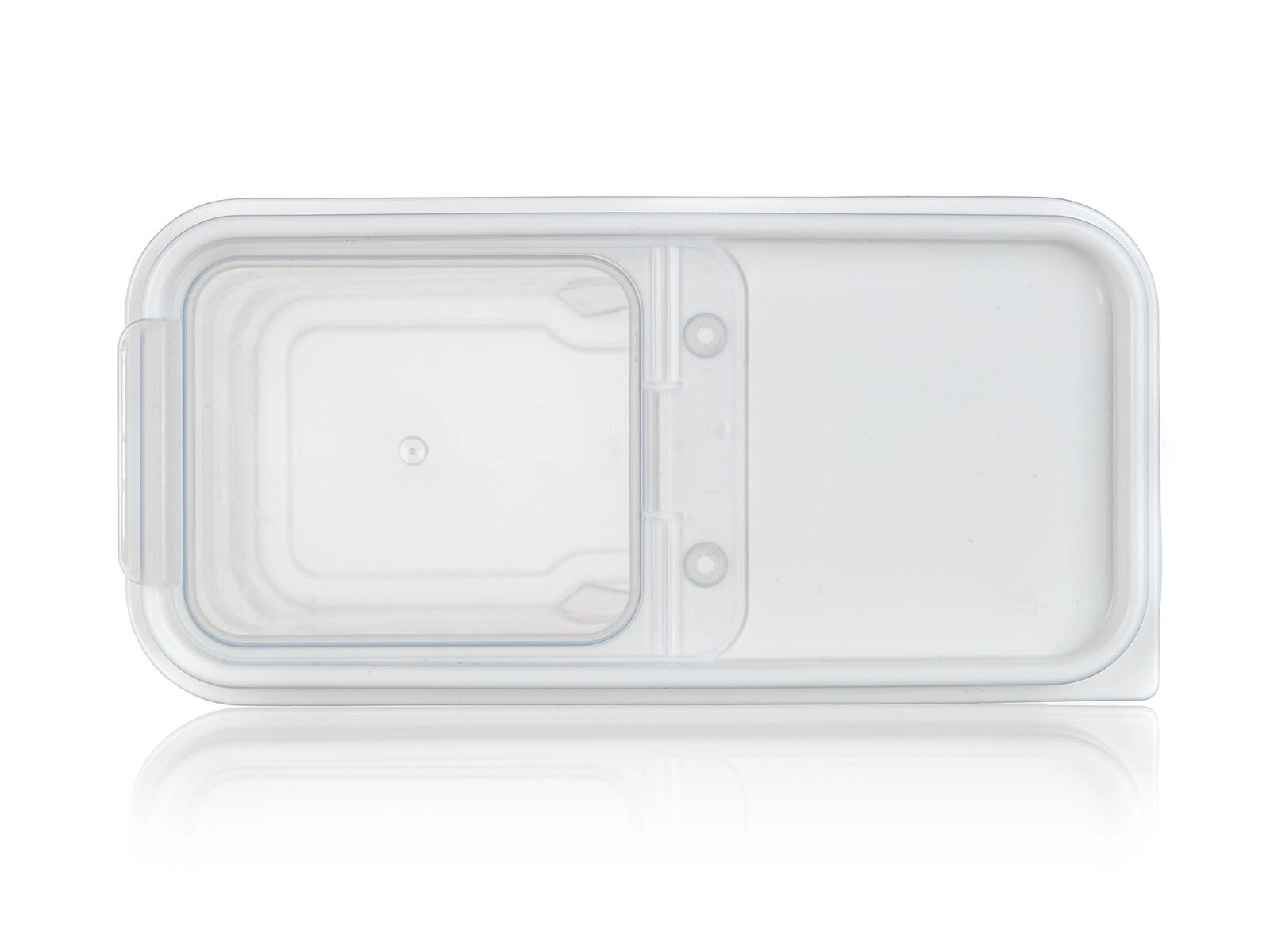 Le corps transparent offre une parfaite visibilité du contenu et le couvercle plat permet un empilage sécurisé pour gagner de la place.