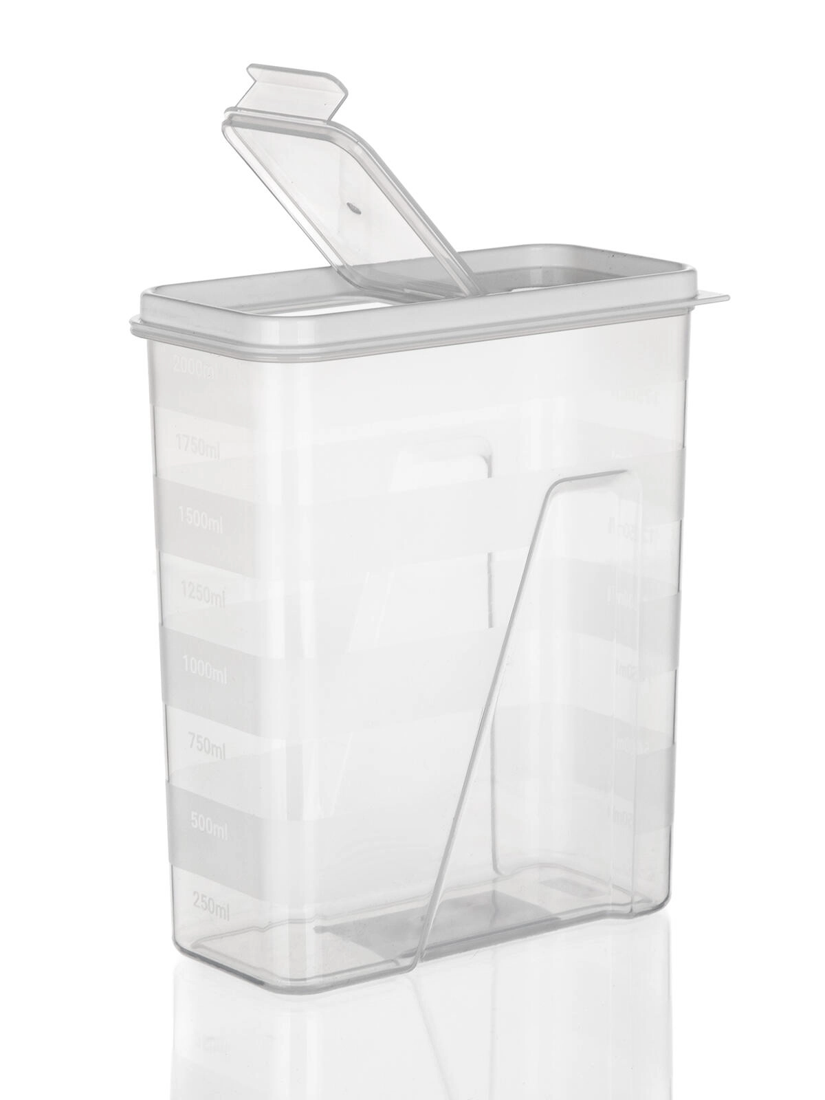 Cette boîte spacieuse de 2 litres est idéale pour l’organisation quotidienne du garde-manger. Les parois transparentes offrent un contrôle visuel rapide du contenu, tandis que le couvercle blanc à ouverture pratique garantit que les aliments restent frais plus longtemps et protégés de l’humidité.