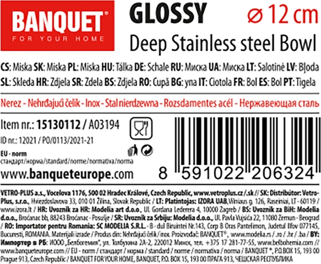 Pratique et élégant, le bol en acier inoxydable Glossy d’un diamètre de 12 cm est idéal pour une utilisation quotidienne en cuisine. Grâce à sa surface lisse, il se nettoie facilement, est hygiénique, résistant et compatible avec le lave-vaisselle. Sa forme profonde facilite le mélange comme le service.