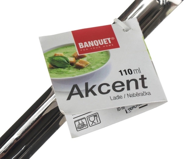 Pratique louche AKCENT en acier inoxydable d’un volume de 110 ml et d’un diamètre de 8 cm, idéale pour servir sauces et soupes. Grâce au crochet de suspension, vous pouvez facilement la poser sur une barre ou le bord d’une casserole, et le lave-vaisselle vous fait gagner du temps d’entretien.