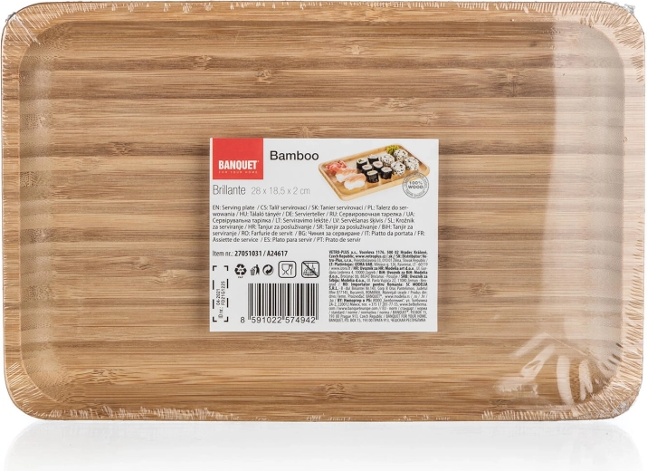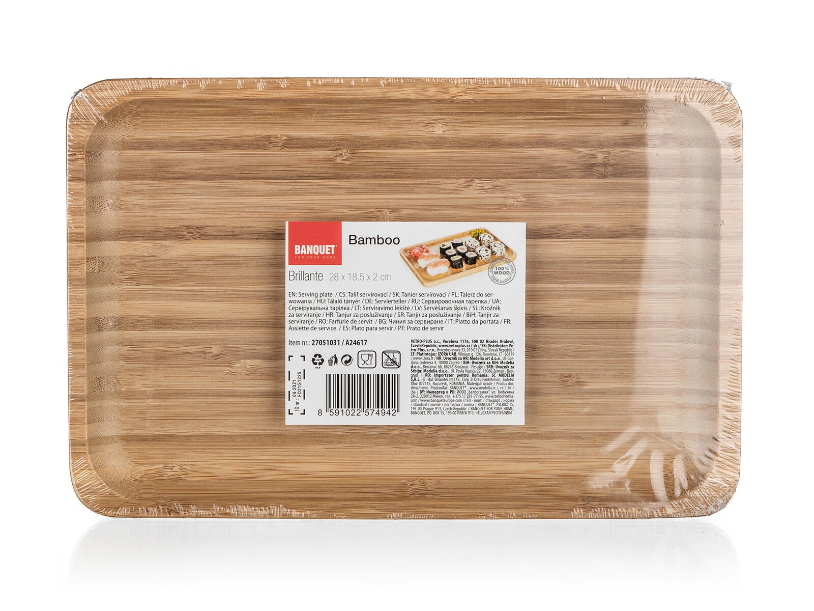 Le format 28 × 18,5 cm offre suffisamment d’espace pour diverses gourmandises. Parfaite pour servir assortiments de sushi, fromages ou douceurs.