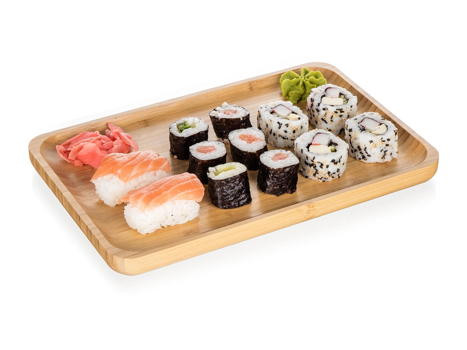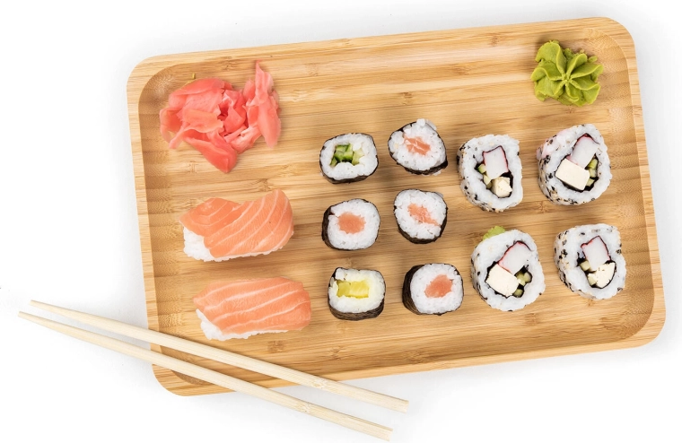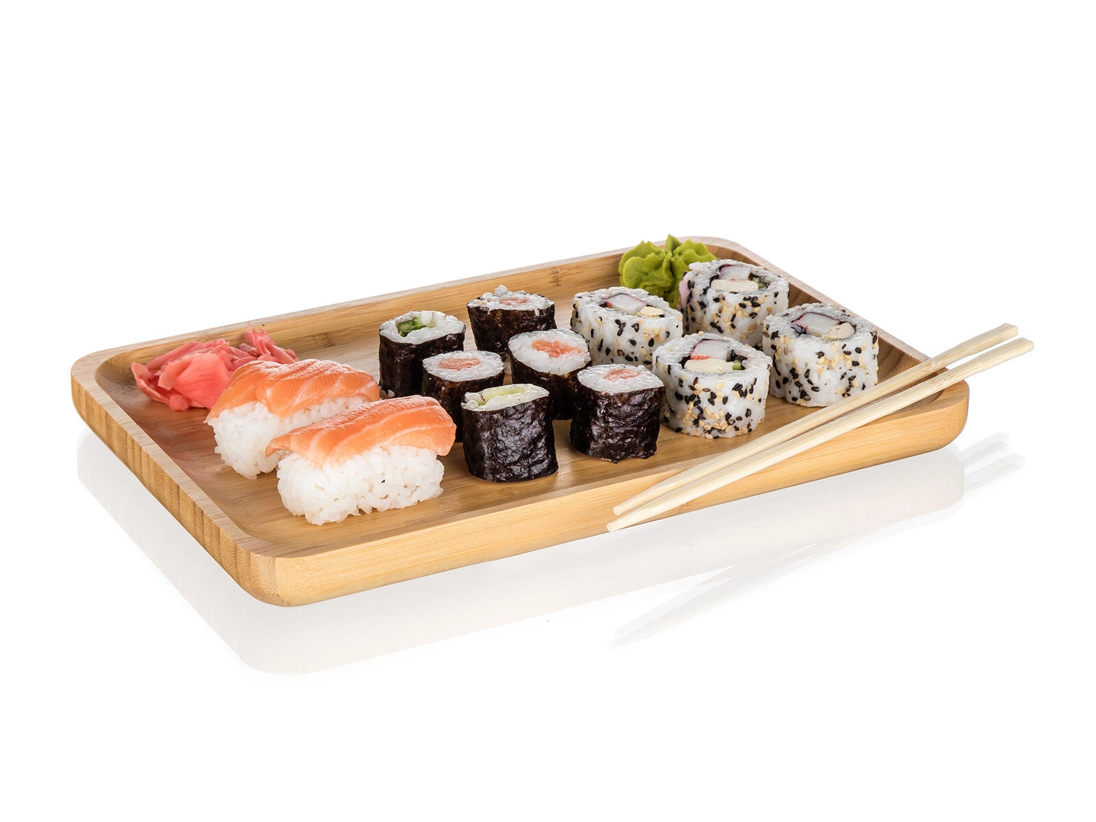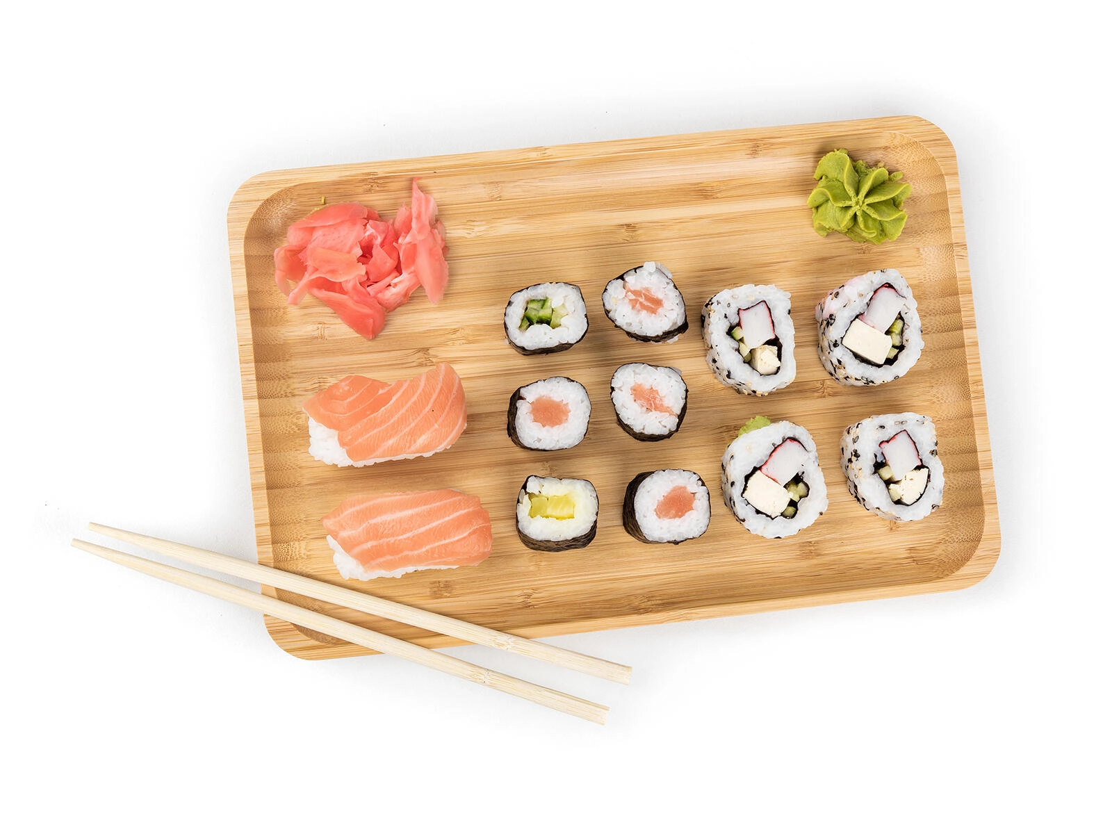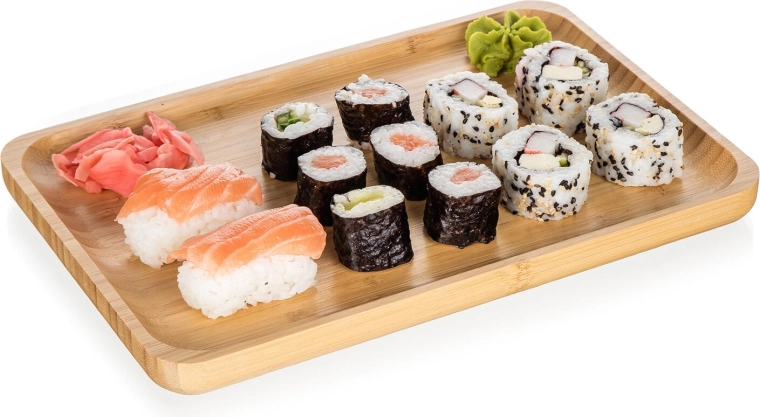 Un léger rebord sur tout le pourtour maintient sushi, bouchées et sauces bien en place – idéal pour un service élégant sans désordre.