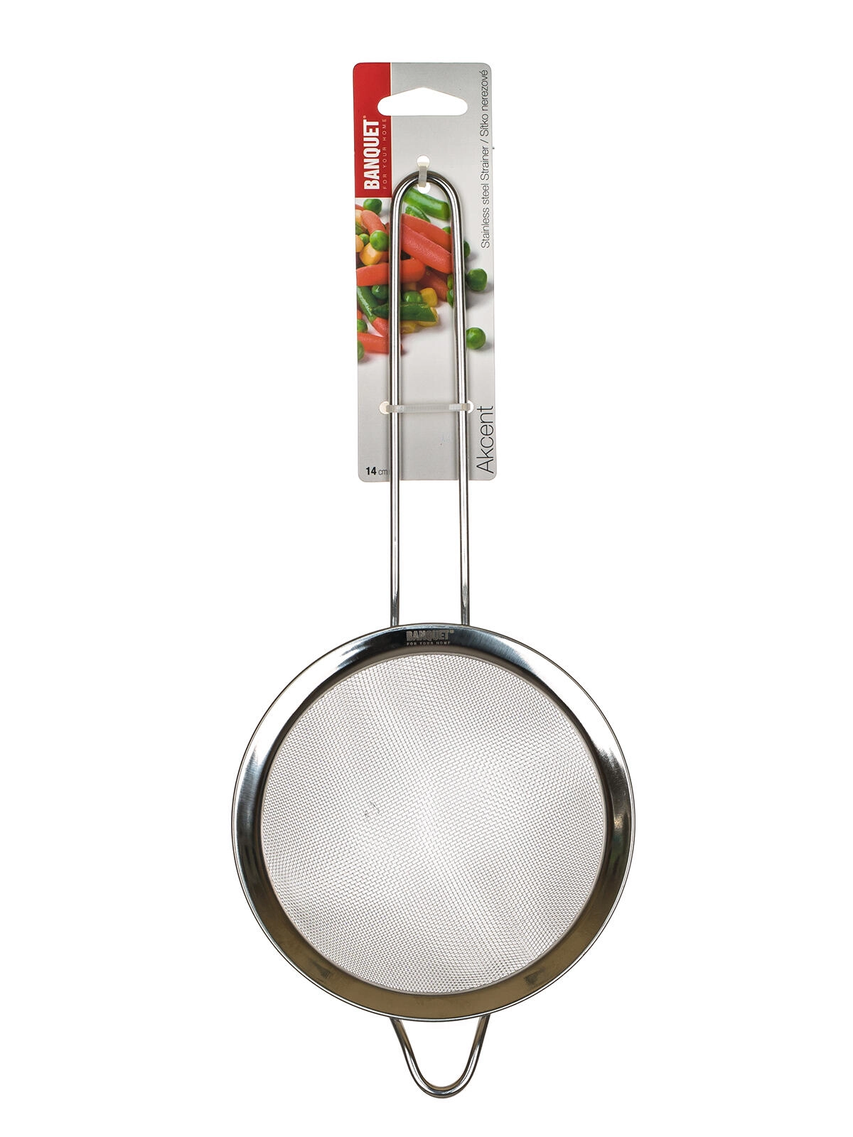 Pratique, la passoire de cuisine AKCENT de 14 cm de diamètre est idéale pour égoutter les liquides, rincer les ingrédients et assurer une filtration fine. Sa conception en acier inoxydable résistante, sa poignée métallique avec œillet de suspension confortable et sa maille fine de 0,28 mm d’une densité de 20 mailles/cm² garantissent un résultat propre et rapide au quotidien.