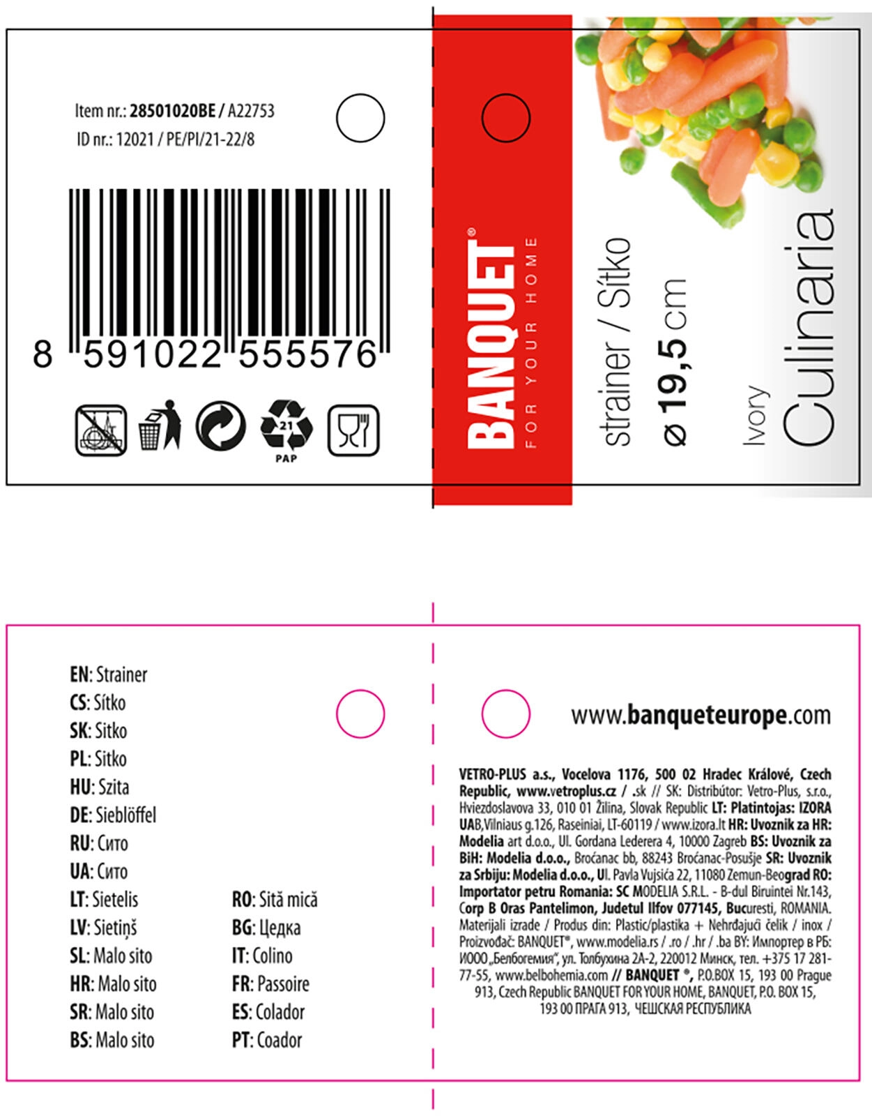 La construction robuste en métal étamé garantit une longue durée de vie et un entretien aisé. La poignée ergonomique avec insert en ABS assure une prise en main sûre et confortable. La passoire n’est pas adaptée au lave-vaisselle – nous recommandons un lavage à la main pour préserver la qualité de la surface.